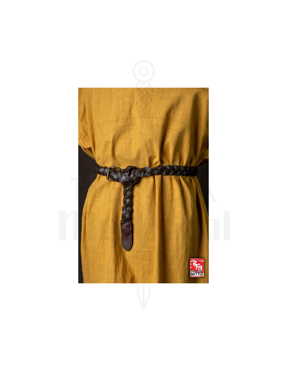 Cette ceinture tressée en cuir de couleur marron vous transporte à l'époque des exploits médiévaux, idéale pour ajouter de l'authenticité à votre costume ou cosplay de chevalier en formation. Avec un design élaboré en cuir de haute qualité, ses trois délicats cordons tressés offrent une base résistante et élégante pour fixer des armes et accessoires, apportant une touche de distinction à votre tenue.
