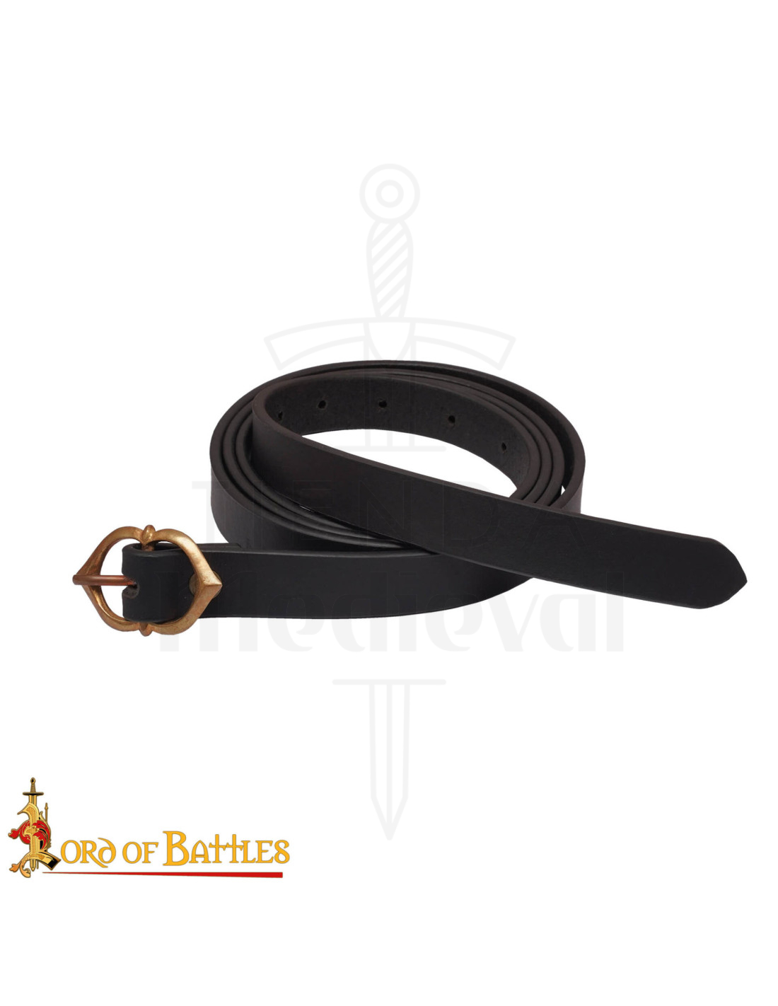 Fabriquée en cuir noir à la finition lisse, elle offre une sensation de fermeté qui transmet la sécurité au porté, sans renoncer au confort au quotidien. La boucle en bronze de teinte dorée vieillie et les extrémités légèrement pointues apportent une touche d'authenticité, et en reflétant la lumière, elle est parfaite pour se démarquer lors de réunions, d'événements ou de reconstitutions historiques sans être ostentatoire. L'extrémité coupée en point et les multiples trous d'ajustement permettent un ajustement précis, de sorte que l'apparence soit toujours impeccable, tant avec des vêtements décontractés qu'avec des tenues d'époque.