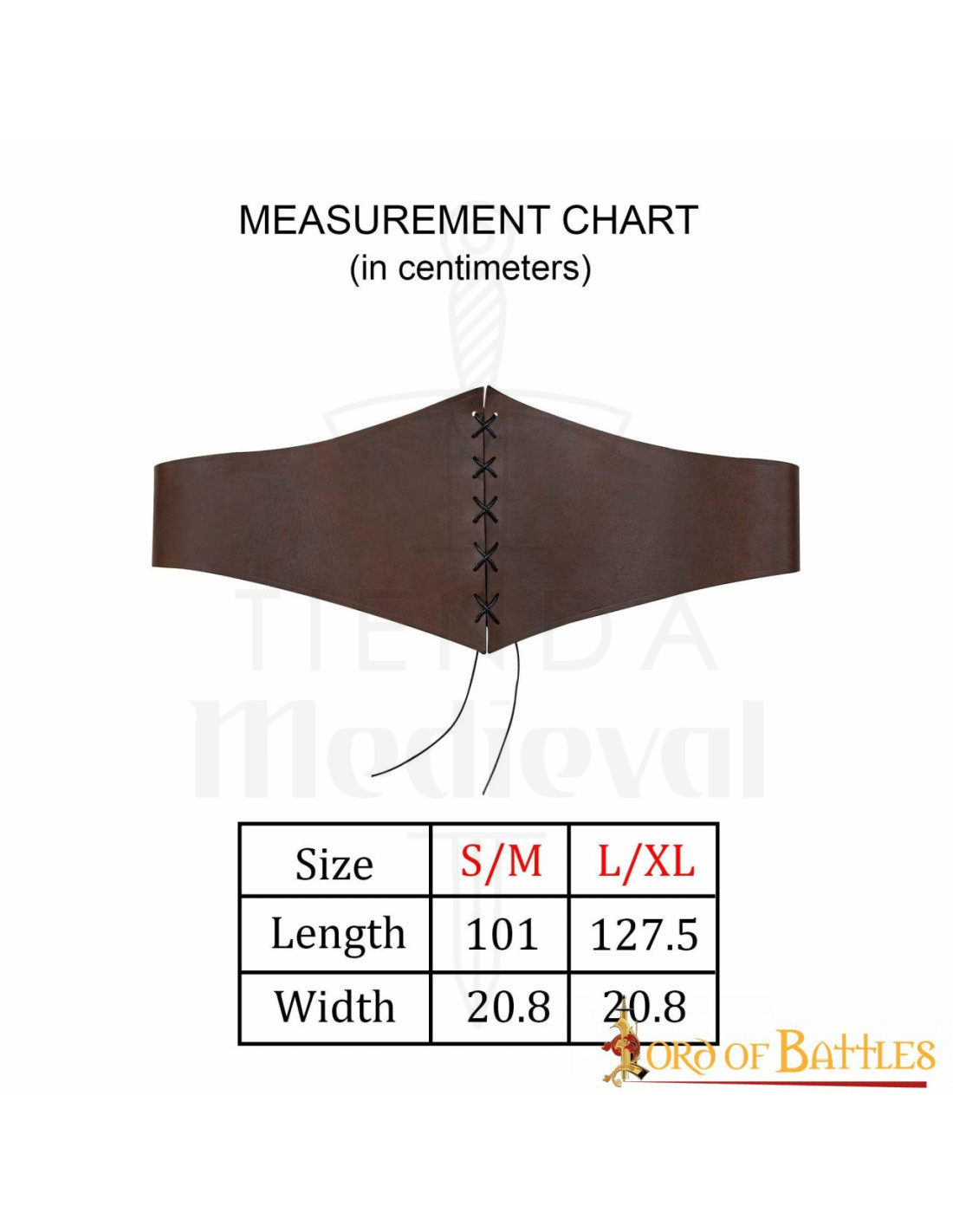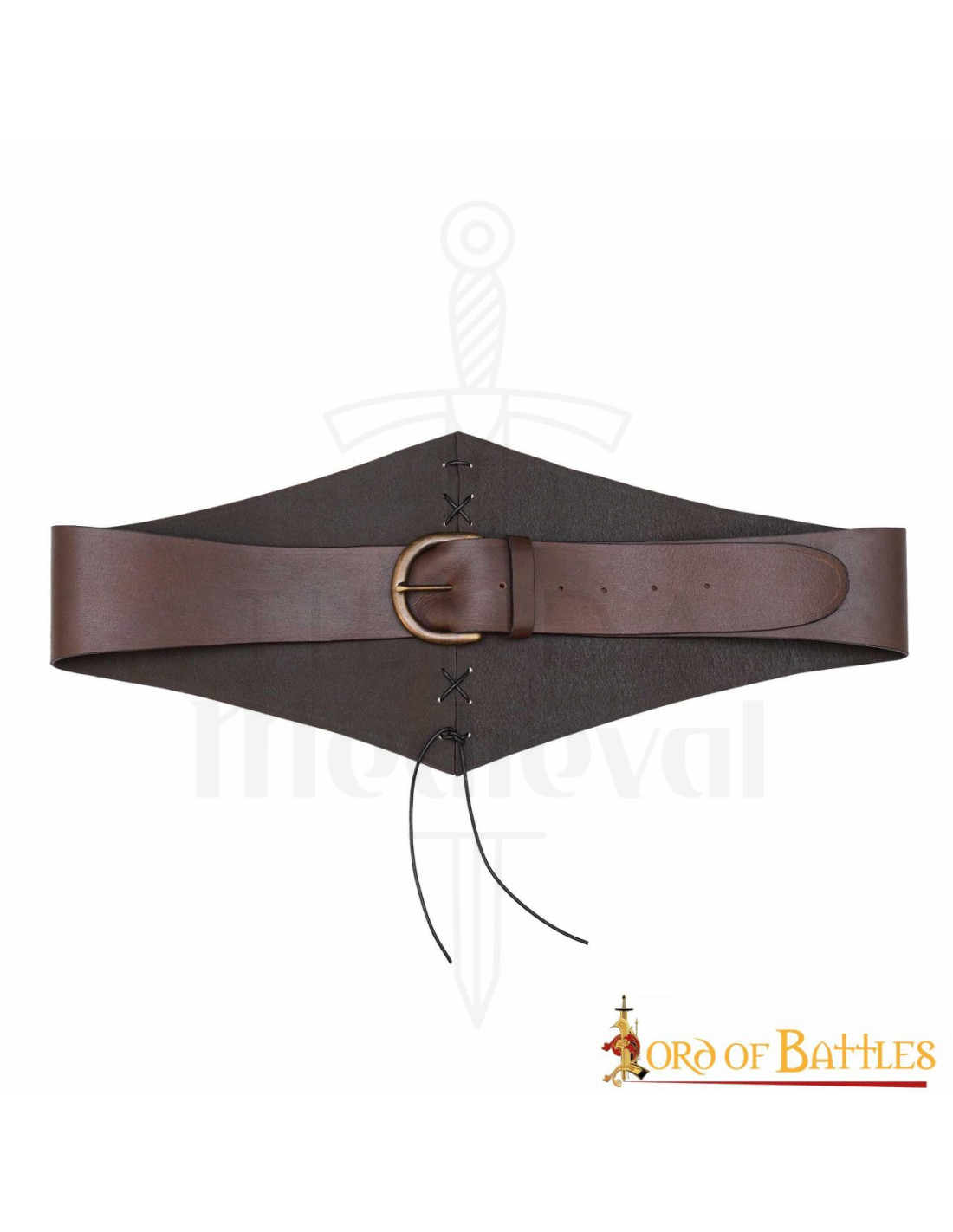 Ce design large qui s'élargit au centre et se rétrécit vers les extrémités met en valeur la silhouette, offrant un soutien là où c'est le plus nécessaire et une liberté de mouvement dans des actions dynamiques. Le cuir lisse avec une finition mate offre un aspect sobre et soigné, ajoutant autorité à votre tenue sans brillants distrayants, parfait pour des scènes de combat et pour compléter des costumes rustiques ou d'époque.