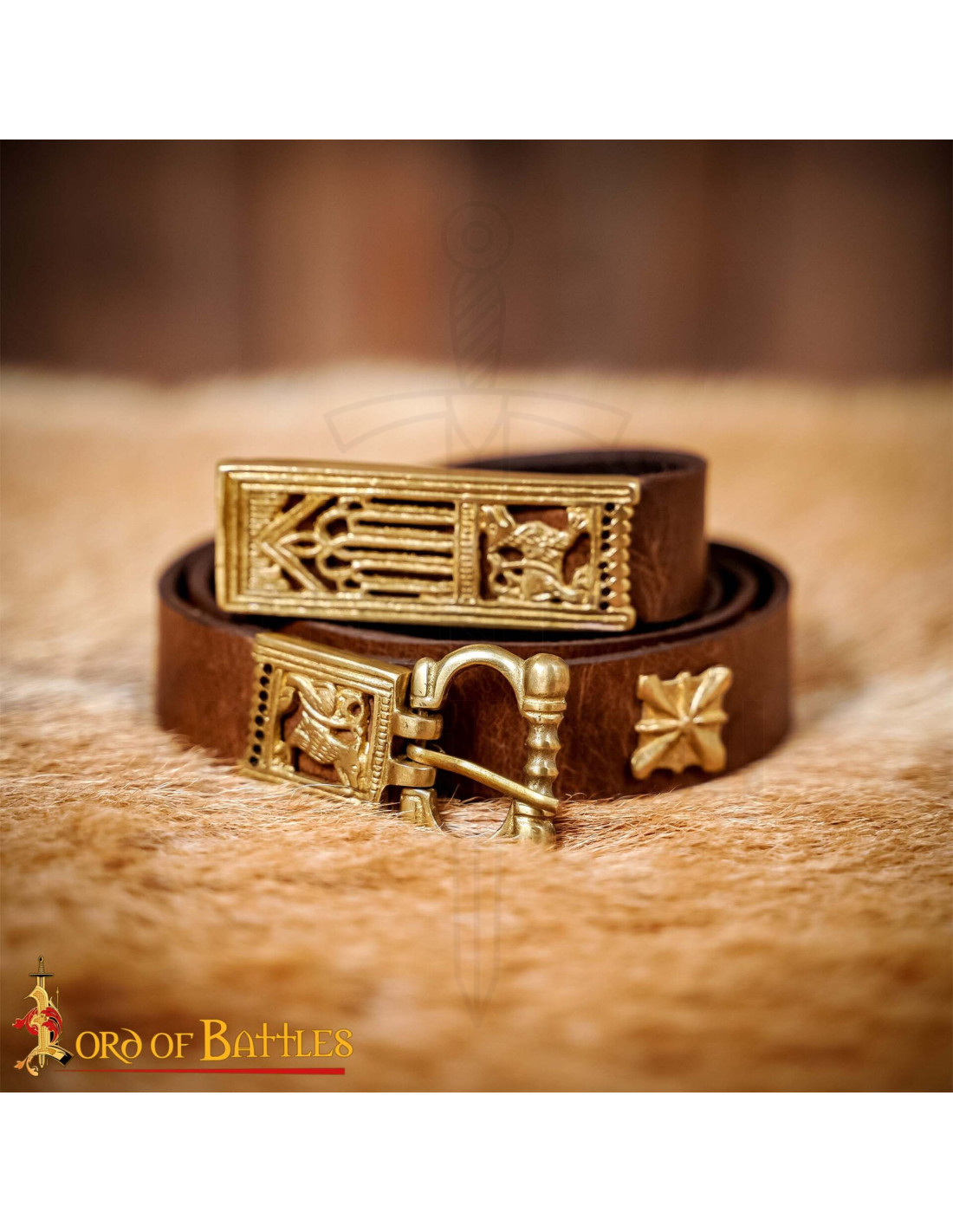 Ceinture médiévale en cuir marron avec décor en laiton, style gothique