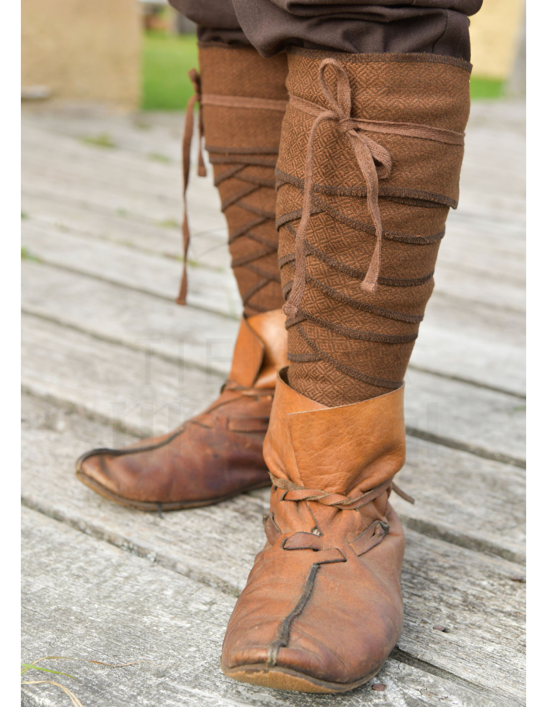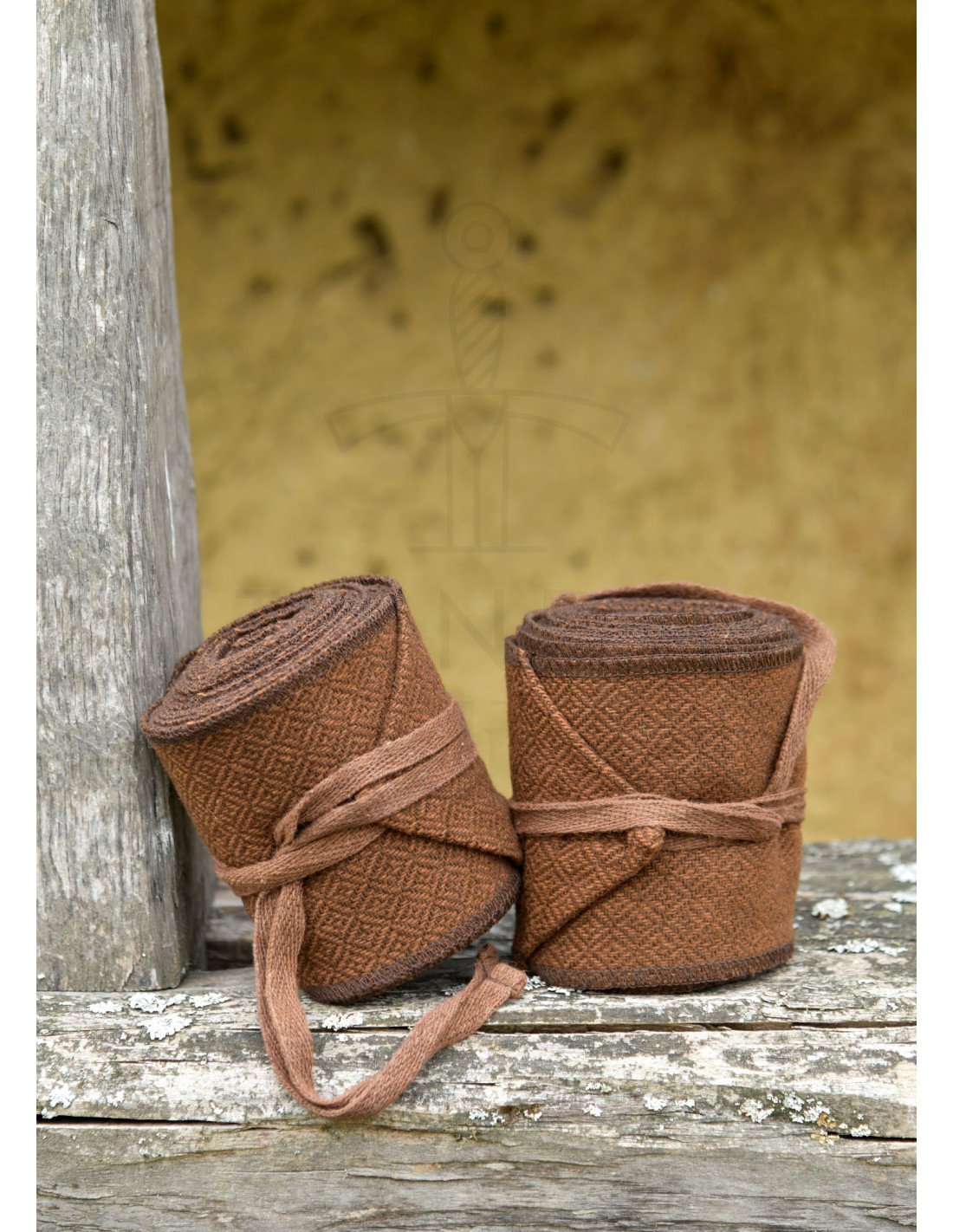 Vous cherchez ce détail qui transforme votre tenue viking de reconstitution en une pièce qui parle d'elle-même ? Ces bandes enroulées attirent l'attention dès le premier regard, avec des tons marron chaleureux et un motif en tissage en los qui ajoute profondeur et caractère sans exubérance.