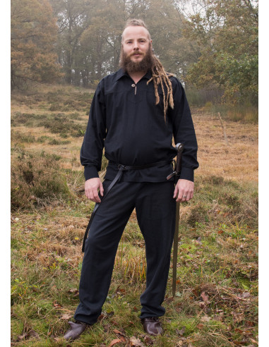 Chemise viking en coton modèle Aventurier, couleur noire