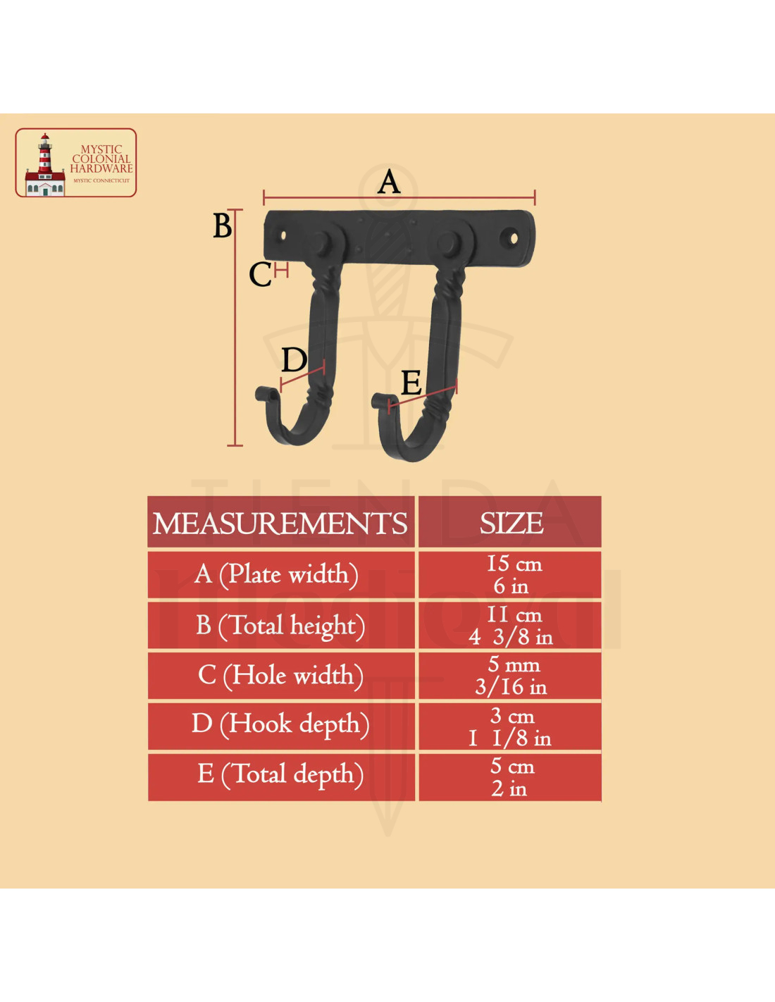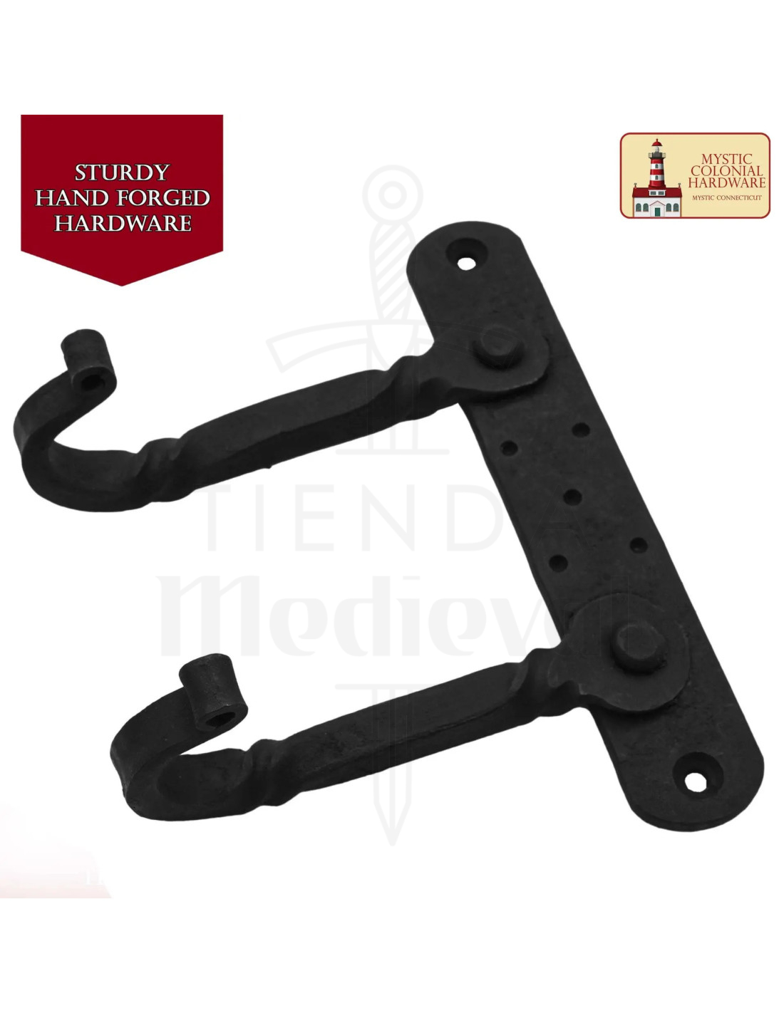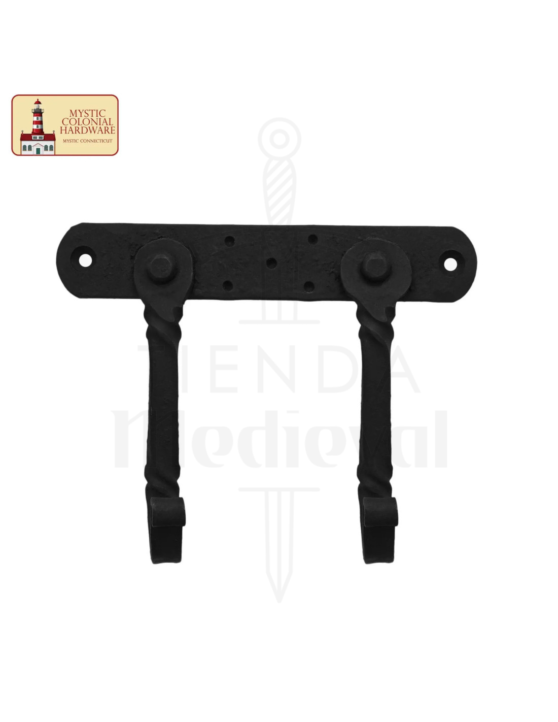 Forgé à la main en fer massif, sa présence transmet solidité et durabilité, tandis que la finition noire vieillie renforce cet aspect classique et médiéval qui ajoute du caractère aux entrées, cuisines ou salles de bains. La plaque martelée et les détails torsadés ne sont pas seulement décoratifs, ce sont des traits qui garantissent stabilité et une esthétique artisanale qui évolue avec l’usage.