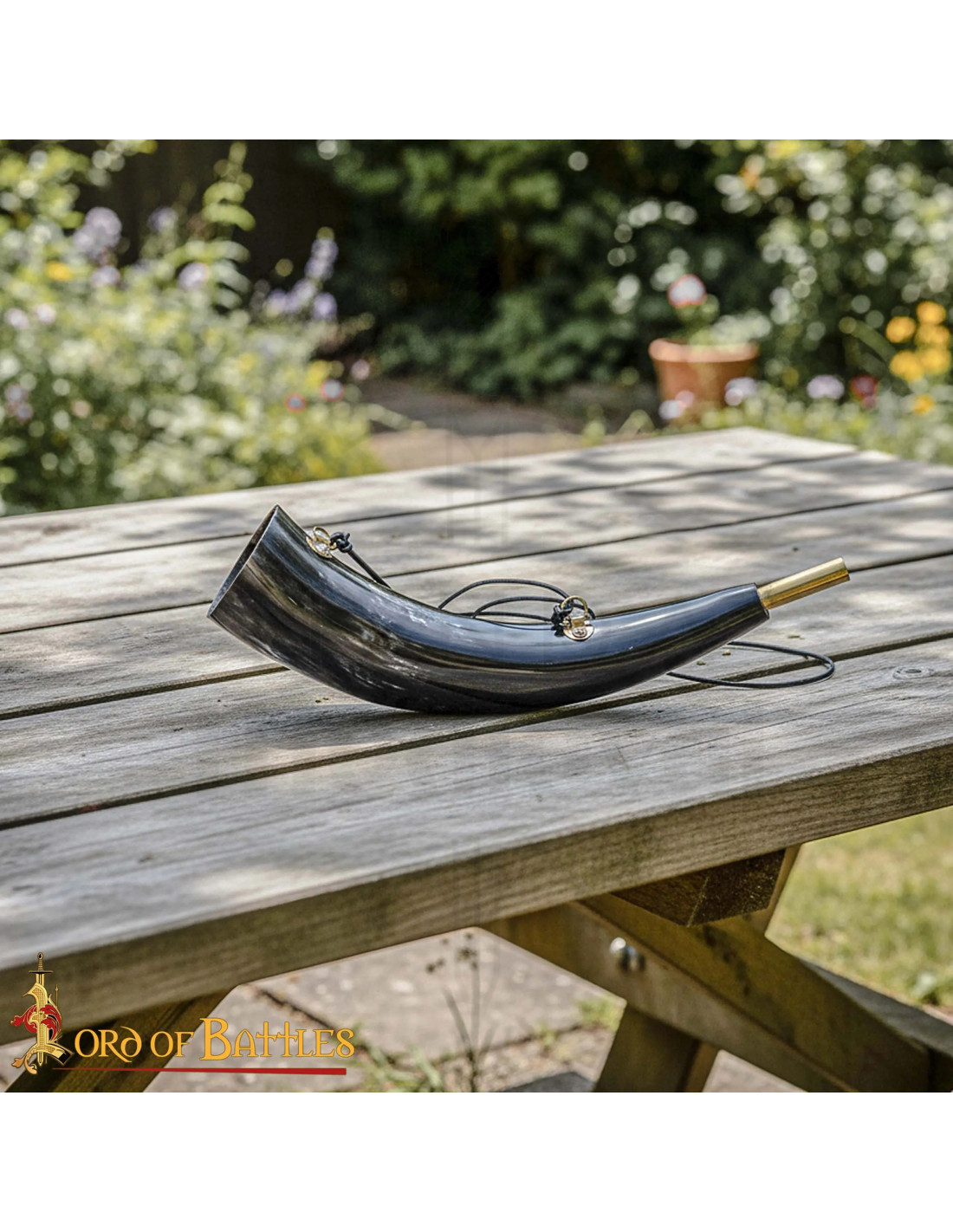 Mais le véritable pouvoir réside dans sa fonctionnalité. Grâce à son bec en laiton intégré, votre souffle se transforme en un appel résonnant et puissant, capable d'être entendu à grande distance. C'est le son qui, autrefois, a pu rassembler des guerriers au mur de boucliers ou annoncer le début d'un grand festin dans le salon à hydromel. C'est une corne qui irradie une véritable présence historique, indispensable pour toute reconstitution ou rituel.