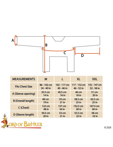Présentée sur un vêtement rembourré rouge avec des boutons recouverts, la combinaison rehausse l'esthétique médiévale et ajoute du confort au contact direct avec la peau, évitant les frottements et offrant une silhouette authentique du cou jusqu'au haut de la cuisse.