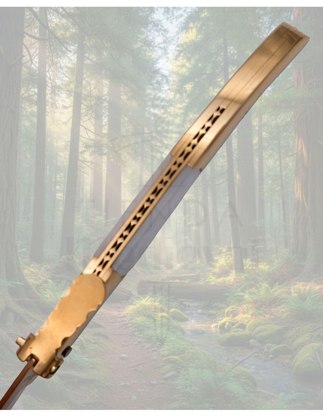 Fabriqué avec précision CNC, chaque joint est parfaitement aligné, ce qui se traduit par un verrouillage doux et fiable, et une sensation de qualité solide à l'ouverture et à la fermeture de la lame. La lame en acier 440 avec bain de Titane doré procure une présence élégante, tandis que la petite encoche près de la pointe permet des travaux de détail avec un meilleur contrôle, sans sacrifier l'esthétique polie.