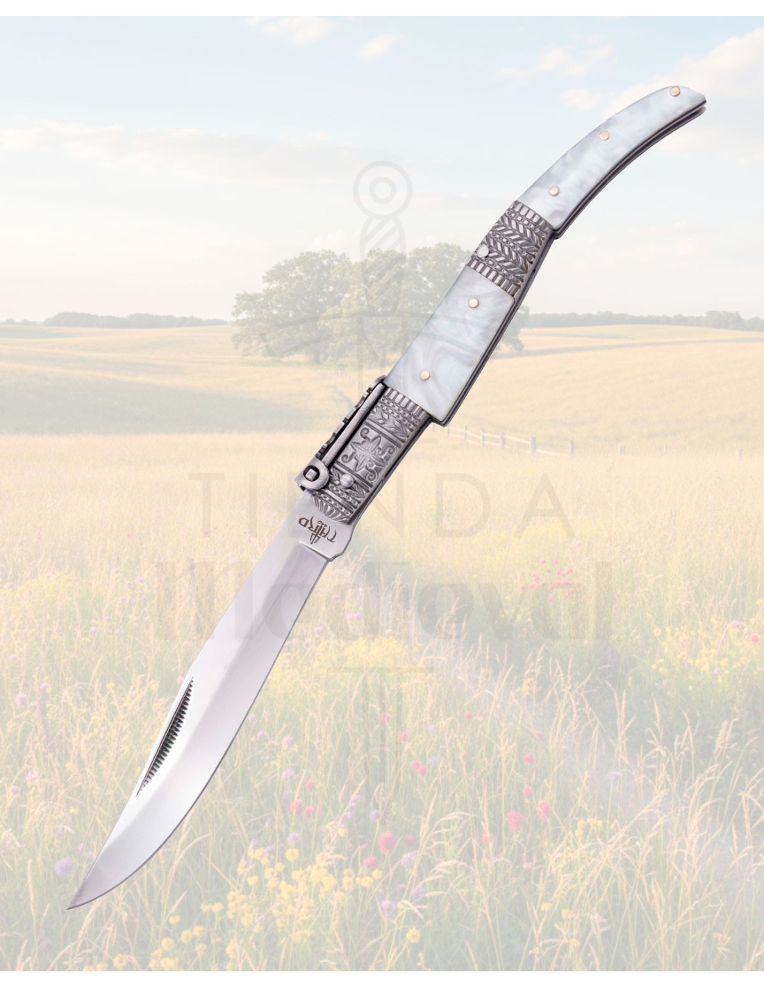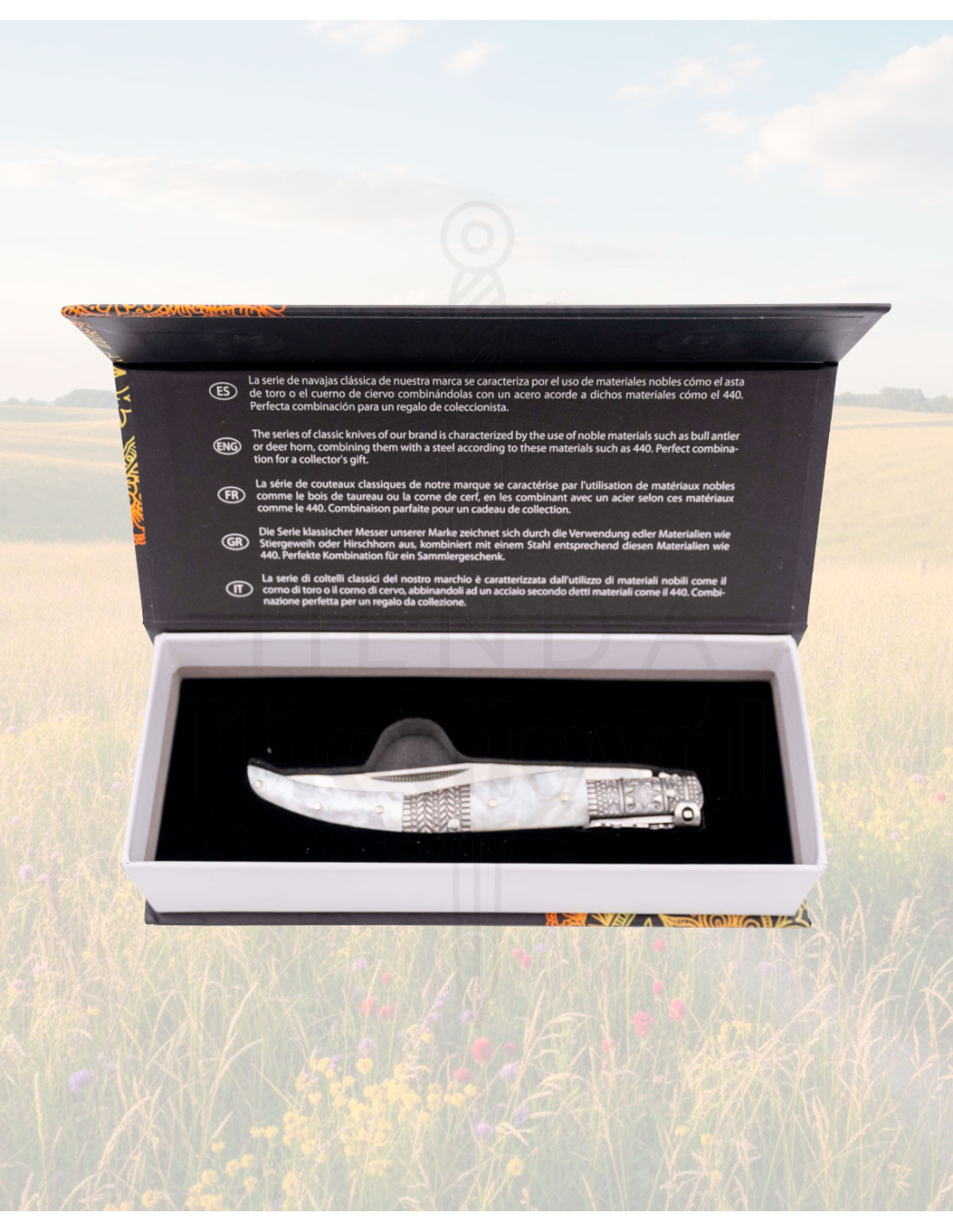 Il est présenté dans un coffret de présentation, prêt à offrir ou à ranger soigneusement. Cette harmonie entre tradition et précision moderne se ressent au toucher, dans la brillance de la lame et dans la finition décorative de chaque détail.