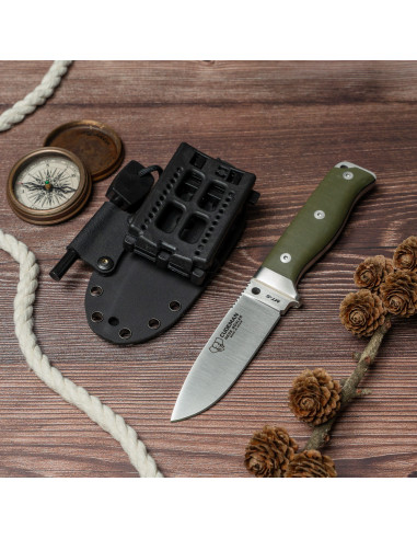 Découvrez l'outil parfait pour vos aventures les plus exigeantes, alliant précision, résistance et confort à chaque utilisation. Ce couteau, conçu avec une lame de 11 cm en acier Böhler N-695, offre des performances exceptionnelles grâce à sa finition satinée et son tranchant poli à plat, idéal pour les tâches en plein air comme pour la survie. La pointe Drop-Point offre une plus grande polyvalence, permettant de réaliser des coupes précises et des travaux détaillés en toute facilité.