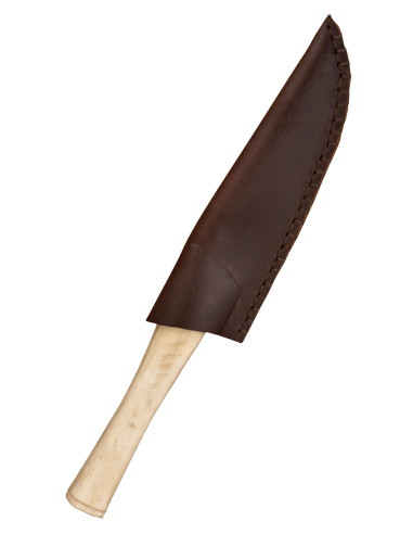 Le manche en olivier offre une prise en main chaleureuse, un confort naturel et une finition avec des veines qui lui donne un caractère unique, tandis que les rivets renforcent l'union pour une durabilité accrue. Le trou à l'extrémité du pommeau permet d'adapter une sangle ou un cordon, rendant l'utilisation plus pratique pour le transport ou pour sécuriser la pièce lors d'activités en plein air.