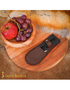 Demande sur Ensemble de couverts médiévaux en acier inoxydable, avec étui en cuir