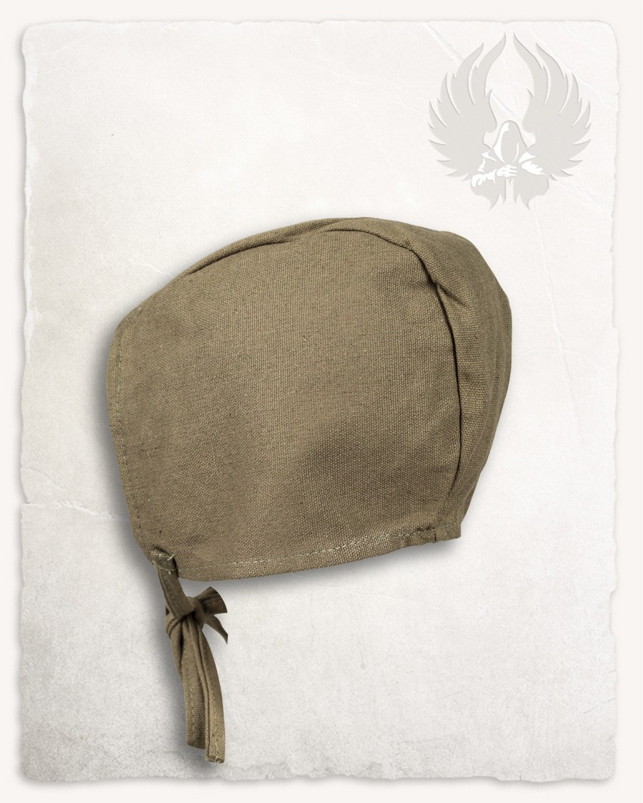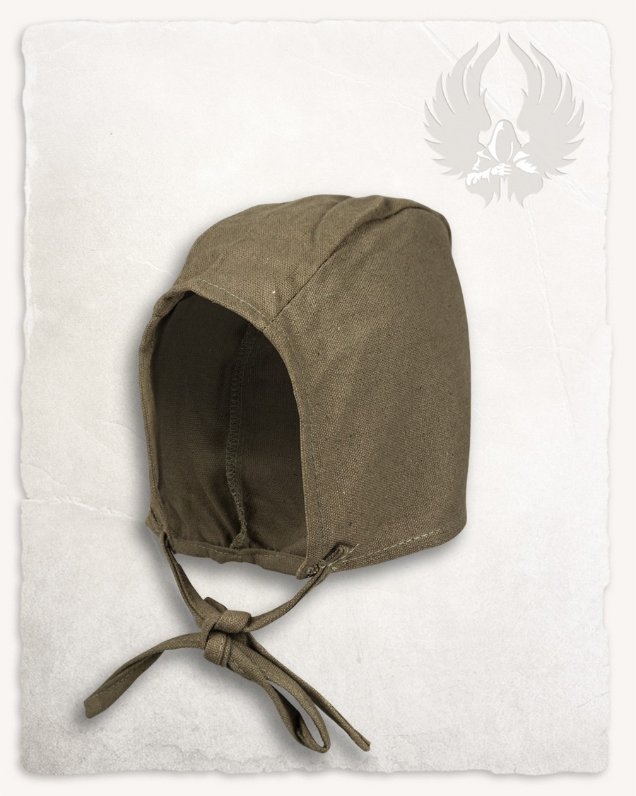 - Design classique : le modèle « Martinus » de Mytholon est fidèle aux crespinas médiévales classiques. Il peut être fermé grâce à deux bandes sous le menton, assurant un maintien sûr et authentique.