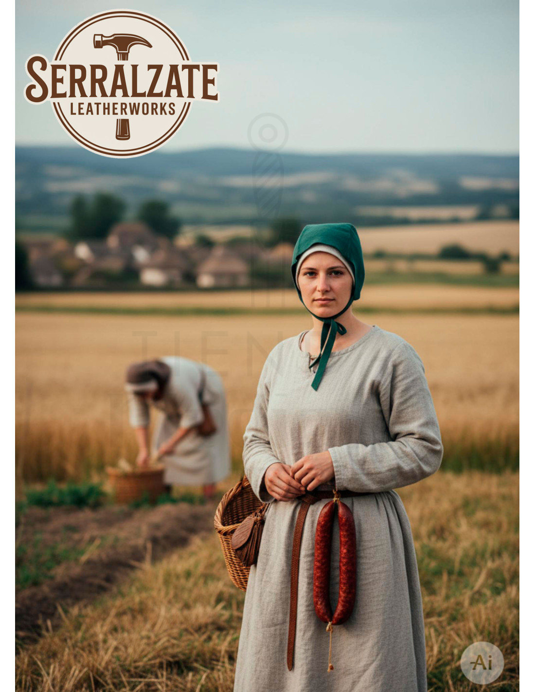 Ajoutez une touche authentique à votre tenue médiévale avec cette élégante capeline en cuir, conçue pour les amateurs d’histoire et d’aventure ! Fabriquée en daim doux de couleur bouteille de gaz, cette pièce allie confort et style, vous permettant d’incarner un véritable chevalier ou dame d’époque.