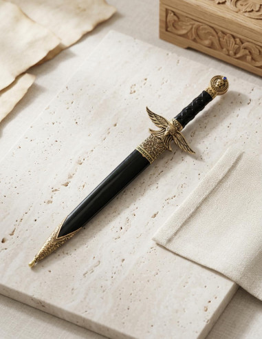 Imaginez avoir entre vos mains une pièce qui reflète la force et la gloire d'un empire. Cette sensation de contrôle et d'autorité que seules les véritables histoires anciennes peuvent transmettre. La Dague Romaine Or est bien plus qu’un simple objet décoratif ; c’est un symbole de votre pouvoir, de votre héritage, de votre capacité à vous démarquer dans chaque scène que vous choisissez de jouer. Chaque ligne de son design et chaque détail doré de ses finitions témoignent de la résistance et de l'artisanat qui vous accompagnent au quotidien.