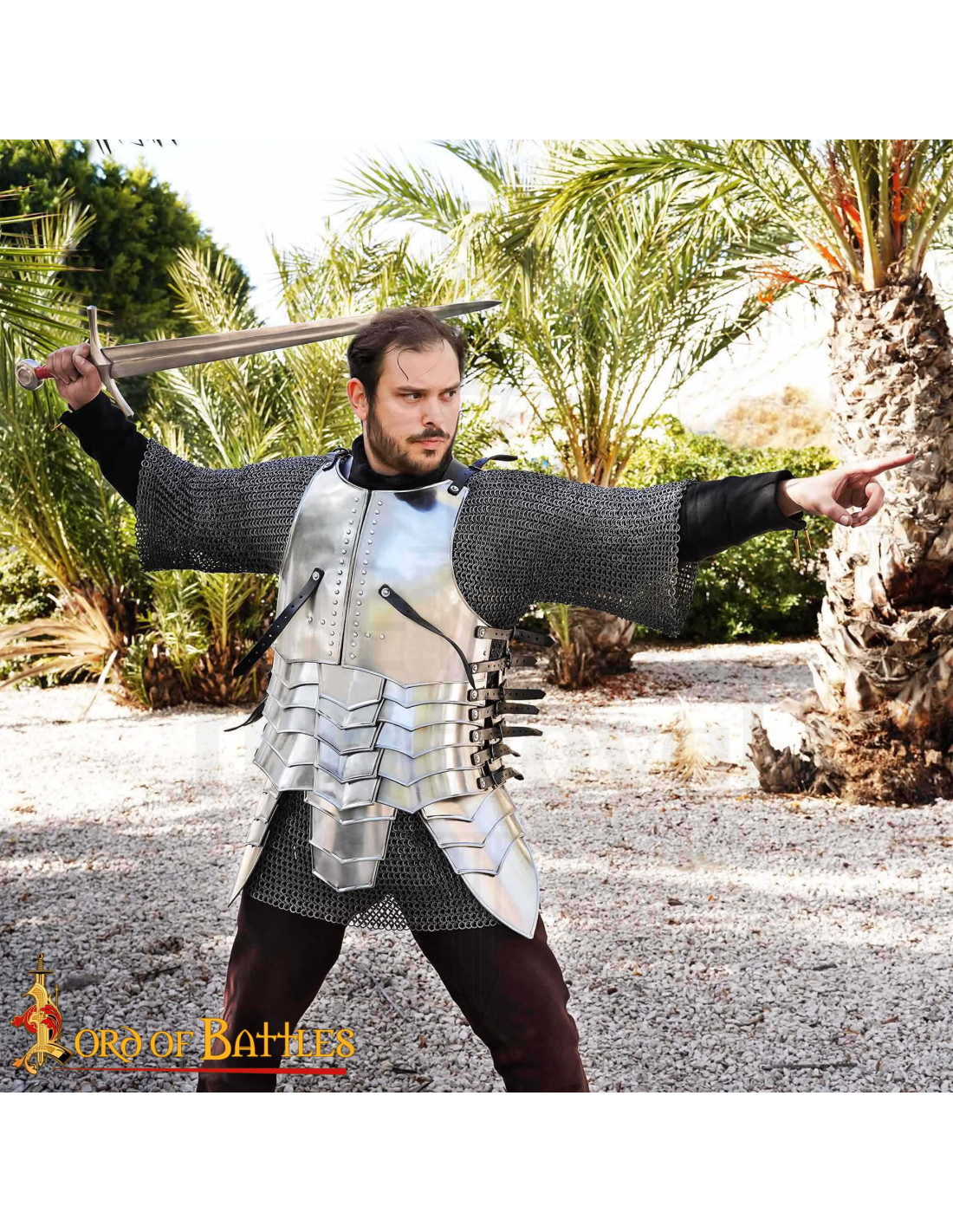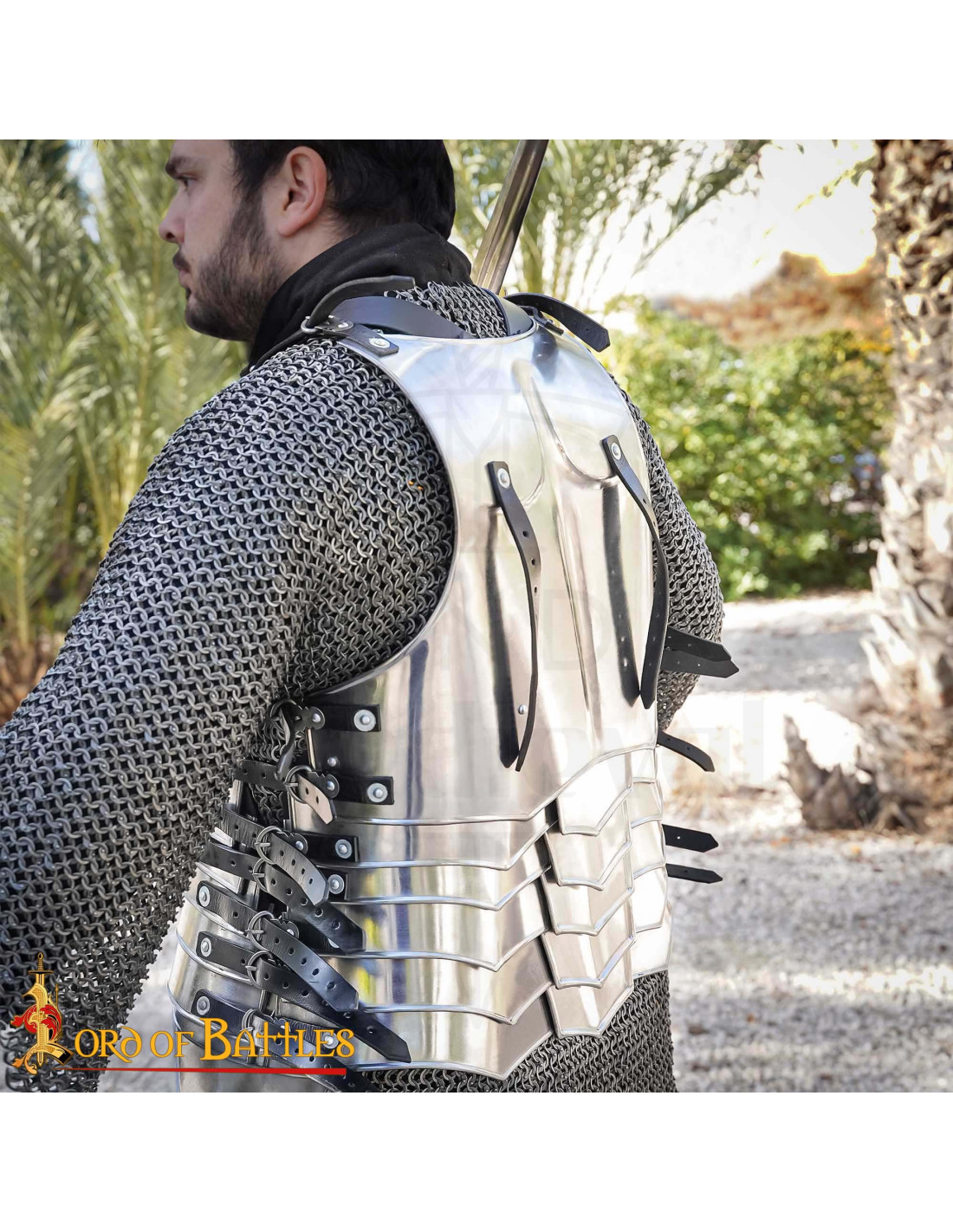 Forgée en acier poli et travaillée à la main, elle offre une défense solide sans devenir un fardeau, vous permettant de vous déplacer avec agilité lors de combats, de performances ou de défilés. Son contour anatomique met en valeur la silhouette, donnant cet aspect héroïque sans perdre en confort.