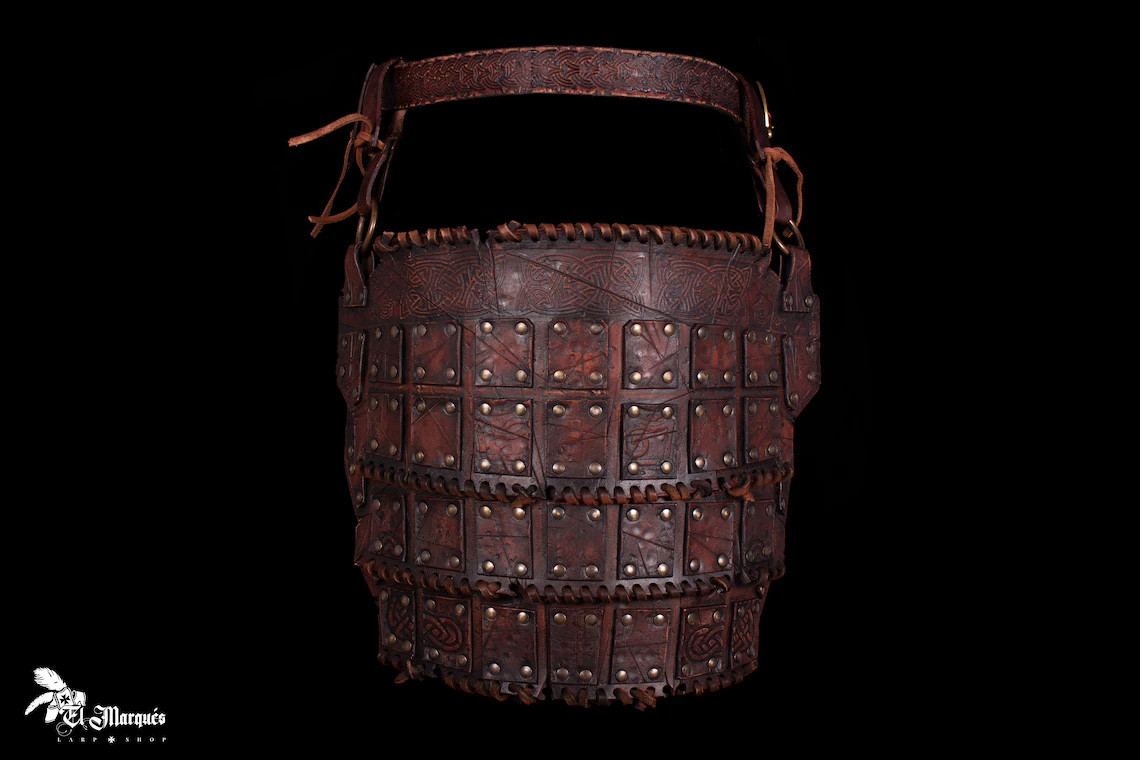 Avec un design en trois pièces et des gravures inspirées par la riche culture celtique, ces escarcelless avec plaques en cuir rivetées offrent non seulement une défense supérieure, mais apportent également une touche de style authentique à ta tenue. La combinaison parfaite entre fonctionnalité et esthétique qui rehaussera encore plus ta présence à chaque événement LARP ou reconstitution historique.