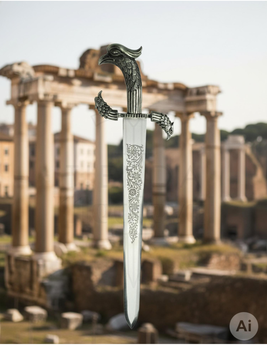Vous cherchez un poignard unique et de haute qualité ? Alors ne cherchez pas plus loin, car nous avons la Dague des Trois Aigles que vous recherchez. Ce poignard a une lame en acier inoxydable gravée et des finitions de garde en argent vieilli, ce qui lui donne un aspect élégant et sophistiqué.