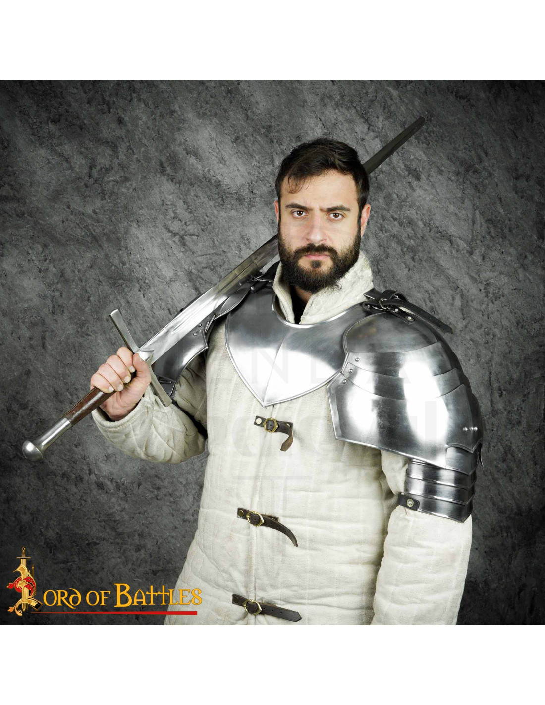 Voulez-vous transformer chaque entrée en un événement et être le centre de toutes les attentions lors de votre prochaine reconstitution médiévale ou convention ? Cet ensemble élève votre présence avec un mélange de protection et d'esthétique qui ne laisse personne douter de votre rôle dans le conflit.