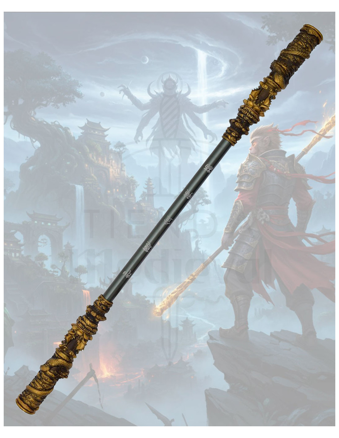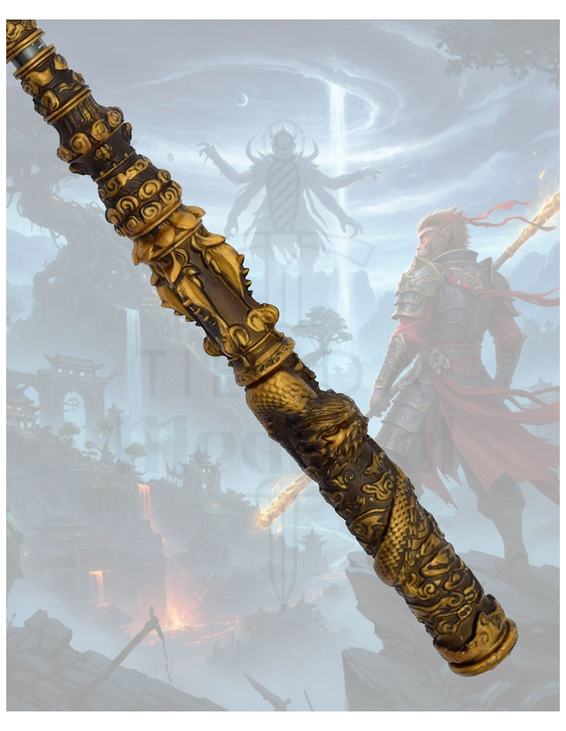 Liée à la figure de Sun Wukong et à sa réinterprétation dans Black Myth : Wukong, cette réplique évoque l'arme emblématique du mythique roi singe, un symbole bien reconnu dans la culture classique et dans la nouvelle narration de jeux vidéo qui a récupéré cette iconographie avec force.
