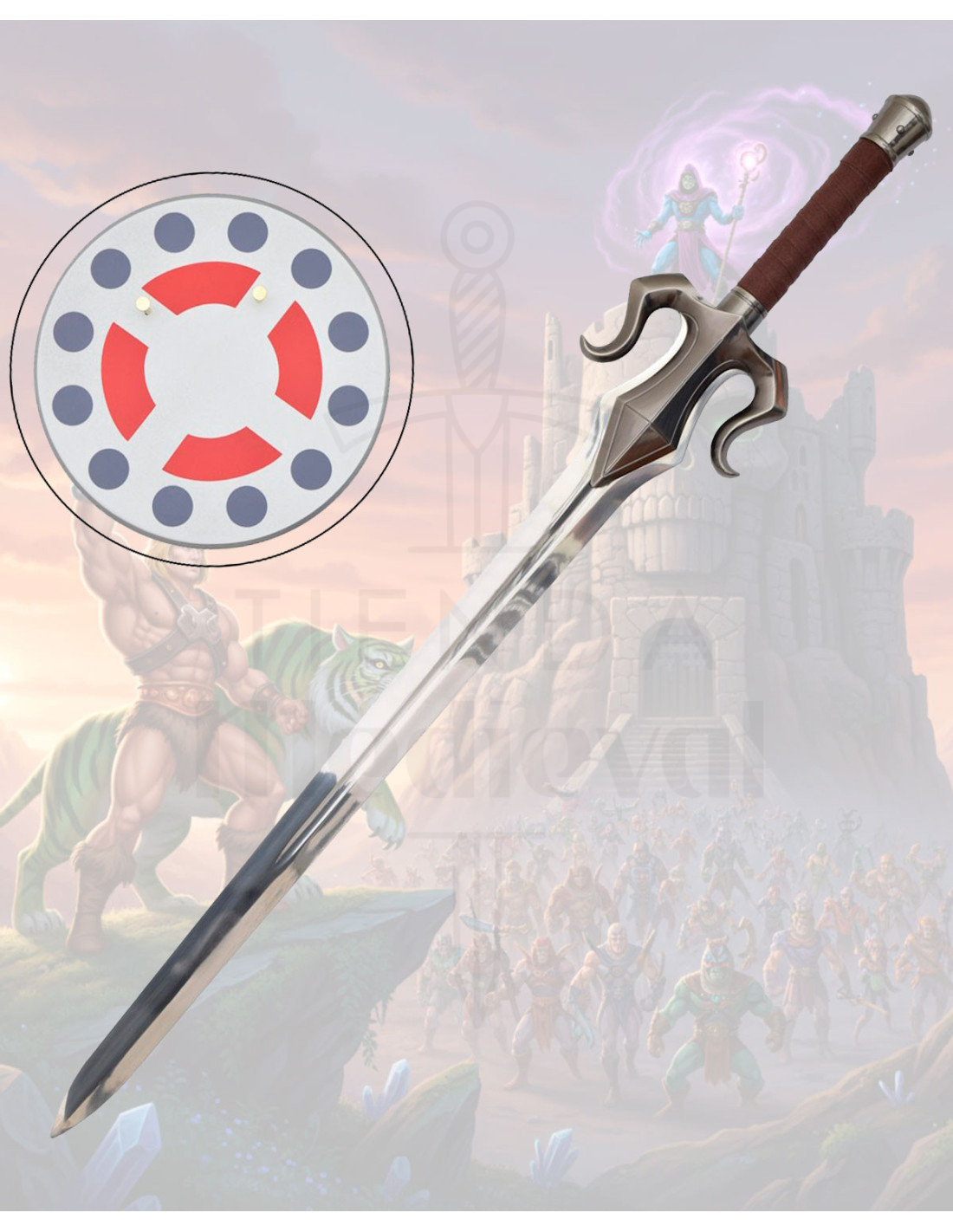 L'Épée de Pouvoir de He-Man - série Maîtres de l'Univers offre une construction qui allie des matériaux solides, pour que vous puissiez profiter d'une sensation réelle sans renoncer à la sécurité et à la facilité d'exposition. La finition métallique de la lame apporte un éclat authentique qui capte la lumière, tandis que la poignée en bois et les finitions en métal transmettent une prise en main confortable et convaincante, idéale tant pour poser que pour montrer.