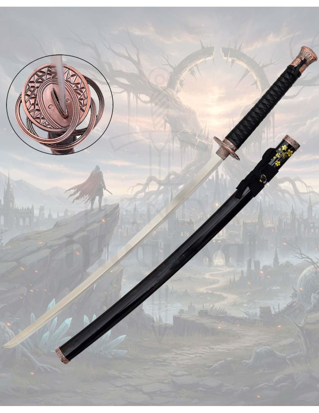 Disponible à l'achat : Katana décorative Moonveil d'Elden Ring, Réplique non officielle, ainsi que pour ceux qui cherchent à acheter la Katana Velo Lunar ou Moonveil d'Elden Ring réplique non officielle, cette pièce allie esthétique, détail et présence pour ceux qui souhaitent une réplique mémorable dans leur collection.
