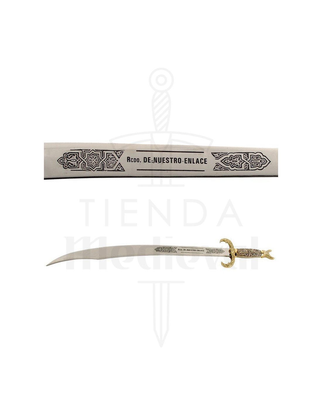 Êtes-vous à la recherche d’un cadeau unique et spécial pour le jour de votre mariage ? Ne cherchez plus, car nous avons la solution parfaite pour vous. Nous vous présentons notre épée Cimeterre spéciale pour les mariages, un cadeau classique qui ne se démode jamais.