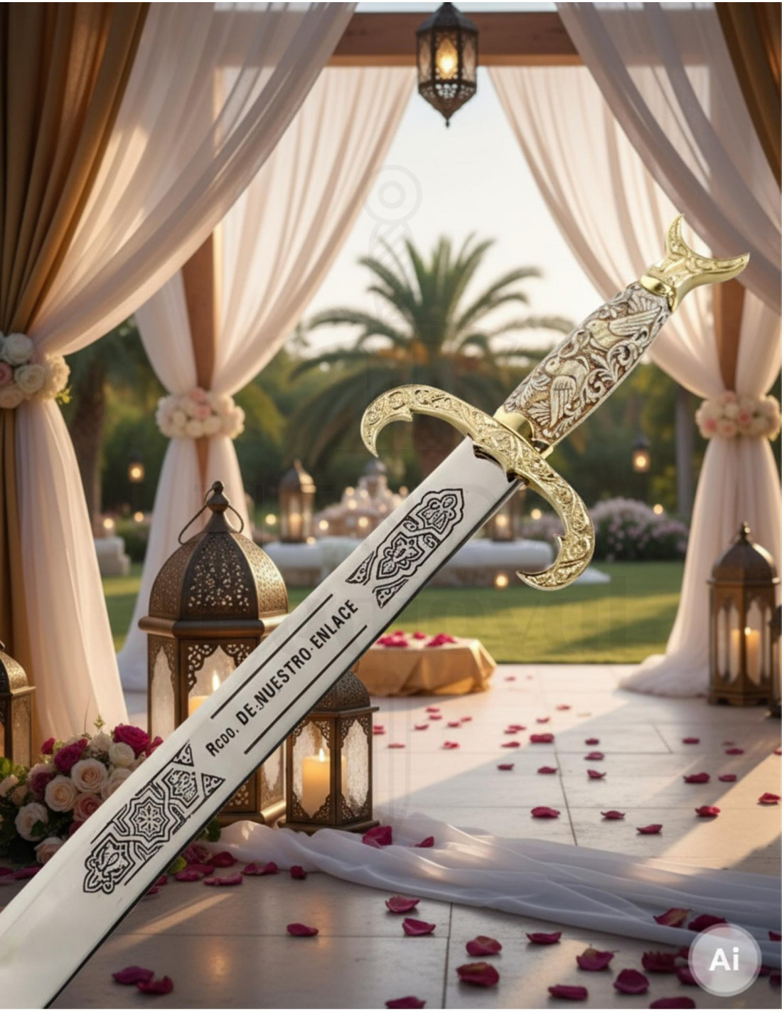 Ne manquez pas l'occasion d'avoir un souvenir unique de votre journée spéciale. Notre épée Scimitar pour les mariages est le cadeau parfait pour surprendre votre partenaire et rendre ce moment inoubliable. N'attendez plus et passez votre commande dès maintenant !