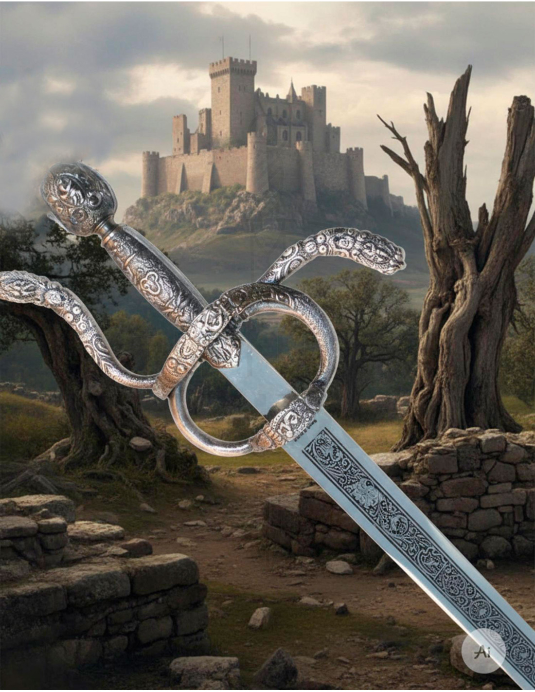 L'épée rend hommage à Philippe II d'Espagne, surnommé « Le Prudent » (Valladolid, 1527 - El Escorial, 1598). Roi d'Espagne et du Portugal (depuis 1580, réalisant l'union ibérique), de Naples, de Sicile, et d'autres territoires, son règne (1556-1598) a marqué le apogée de l'Empire espagnol. Sous son règne, l'empire atteignit sa plus grande expansion et devint la principale puissance mondiale, notamment grâce à sa victoire à la Bataille de Lépante (1571) et à la construction du Monastère de l'Escurial.