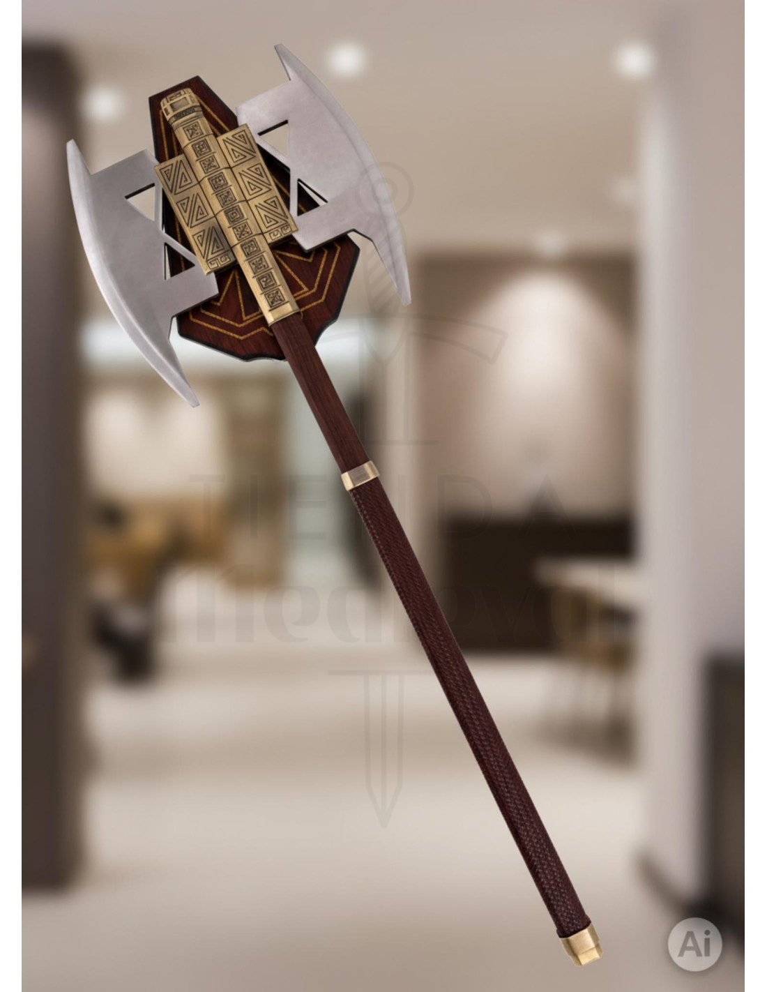 Cette pièce, en plus de sa valeur décorative, dispose d’un support inclus facilitant son exposition et renforçant son impact visuel. Son poids de 4476 g garantit une sensation solide et de qualité, idéale pour les collectionneurs et les fans de la saga souhaitant compléter leur environnement avec une touche médiévale et fantastique. Bien qu’elle ne soit pas officielle, sa finition et son style évoquent les aventures et batailles de l’univers de Tolkien, faisant de cette hache un élément unique pour décorer, faire du cosplay ou offrir en cadeau à thème.