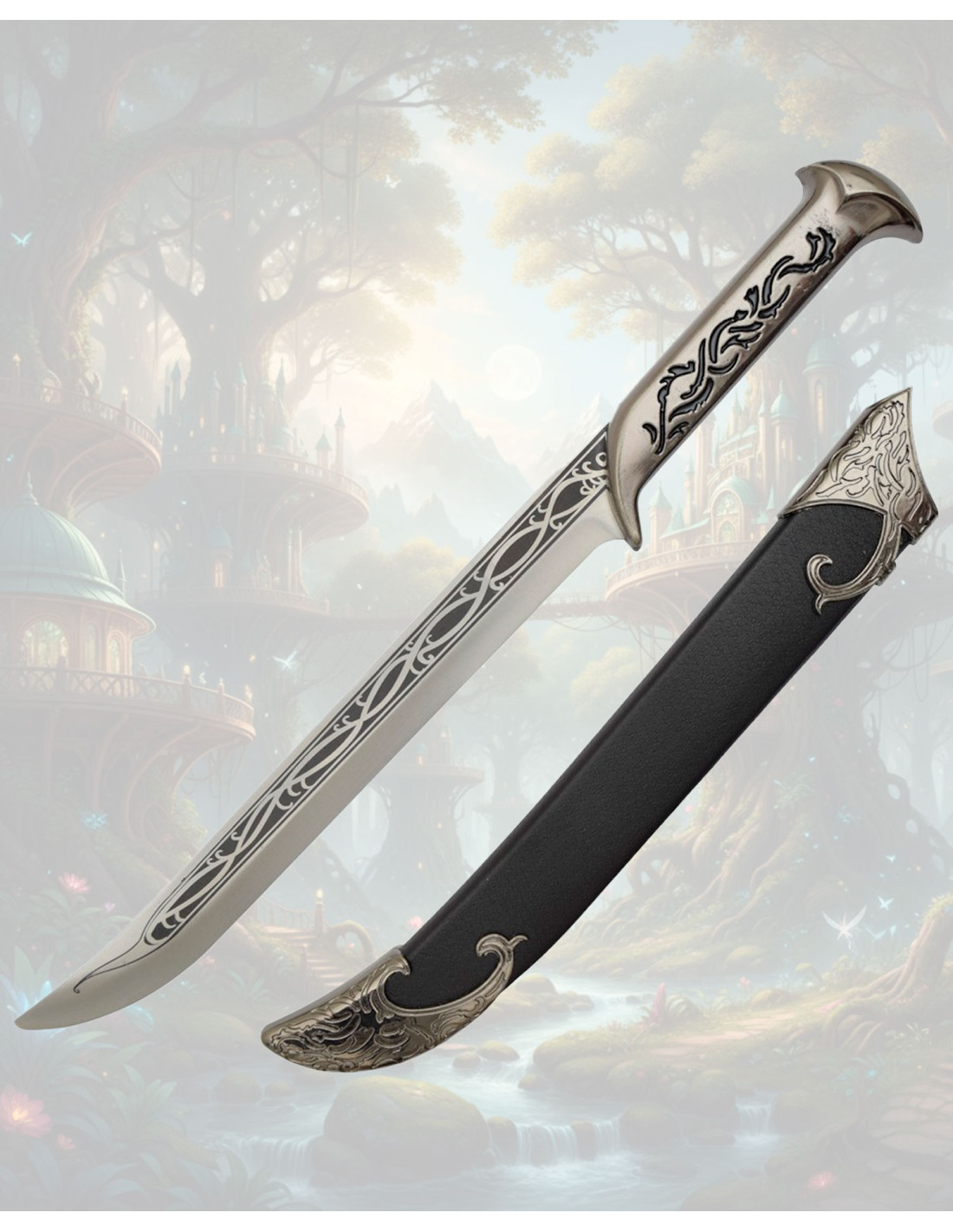 Une option pensée pour ceux qui désirent une réplique avec une esthétique soignée et un caractère narratif, idéale si vous souhaitez acheter l'épée courte décorative non officielle de Thranduil - Le Hobbit et ajouter une pièce avec présence et détail à votre collection.