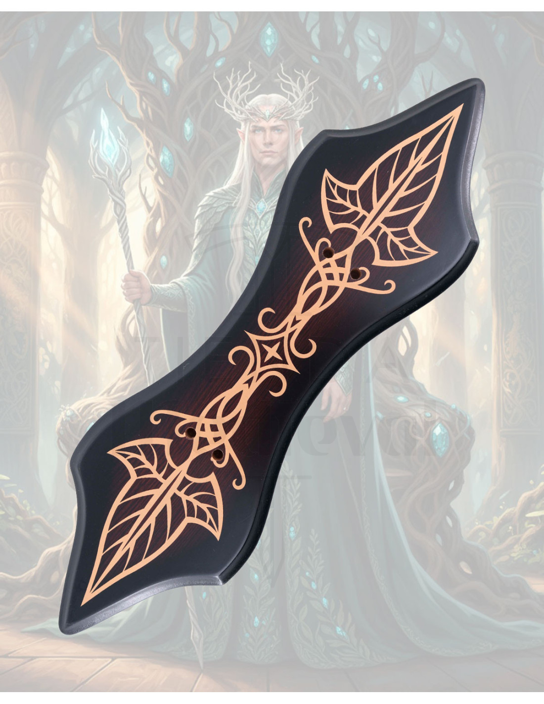 Cette réplique évoque l'élégance de la forêt elfique, avec une lame incurvée et fine qui joue avec la lumière grâce aux perforations décoratives sur son centre, créant des reflets qui semblent en mouvement. Le tranchant prononcé et la pointe légèrement courbée apportent un aspect authentique et dynamique, pensé pour ceux qui recherchent une décoration avec personnalité, pas un simple ornement. Le fini métallique brillant rehausse les détails, tandis que la poignée avec courbe ergonomique et motifs ornementaux en relief ajoute une touche de distinction qui se ressent en la tenant ou en l'observant dans son expositeur.