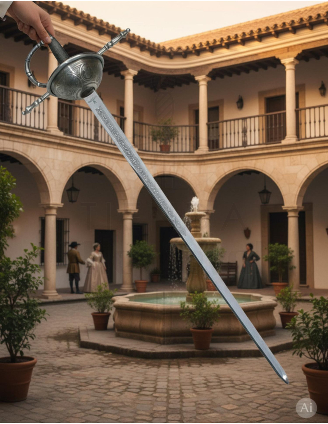 Découvrez la réplique classique de l'épée espagnole Tizona du XVIIe siècle ! Cette épée présente une finition rustique et un bol gravé pour un look authentique et élégant. Fabriquée par le prestigieux armurier de Tolède, José Luis Rubio, cette épée est fabriquée avec une lame en acier inoxydable de haute qualité.