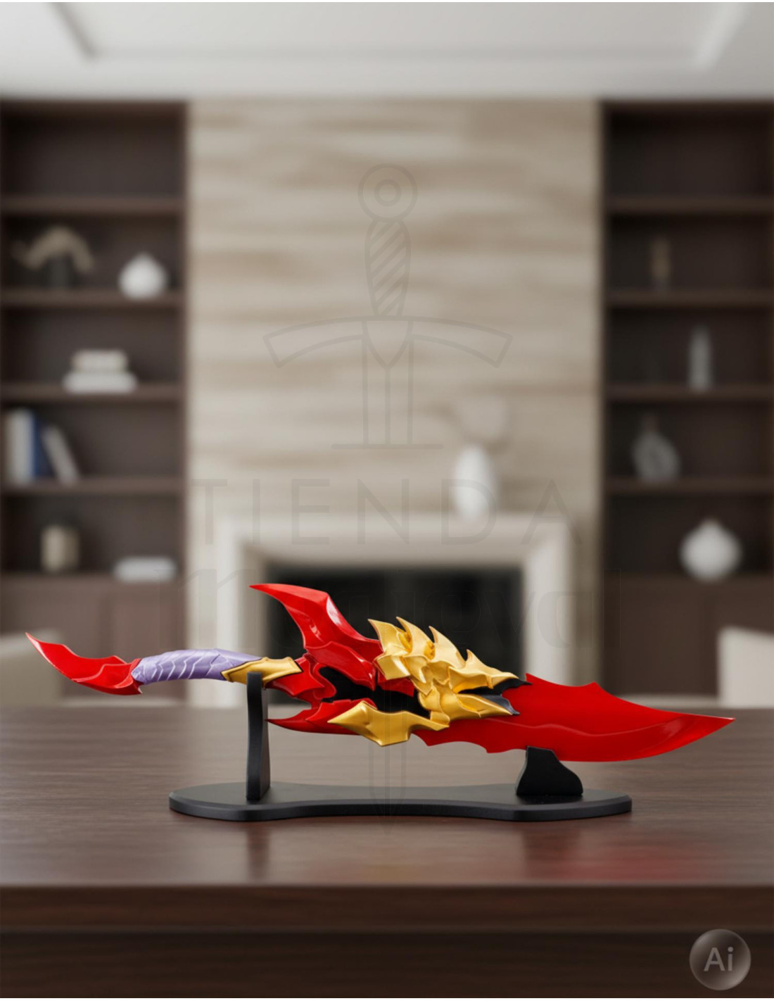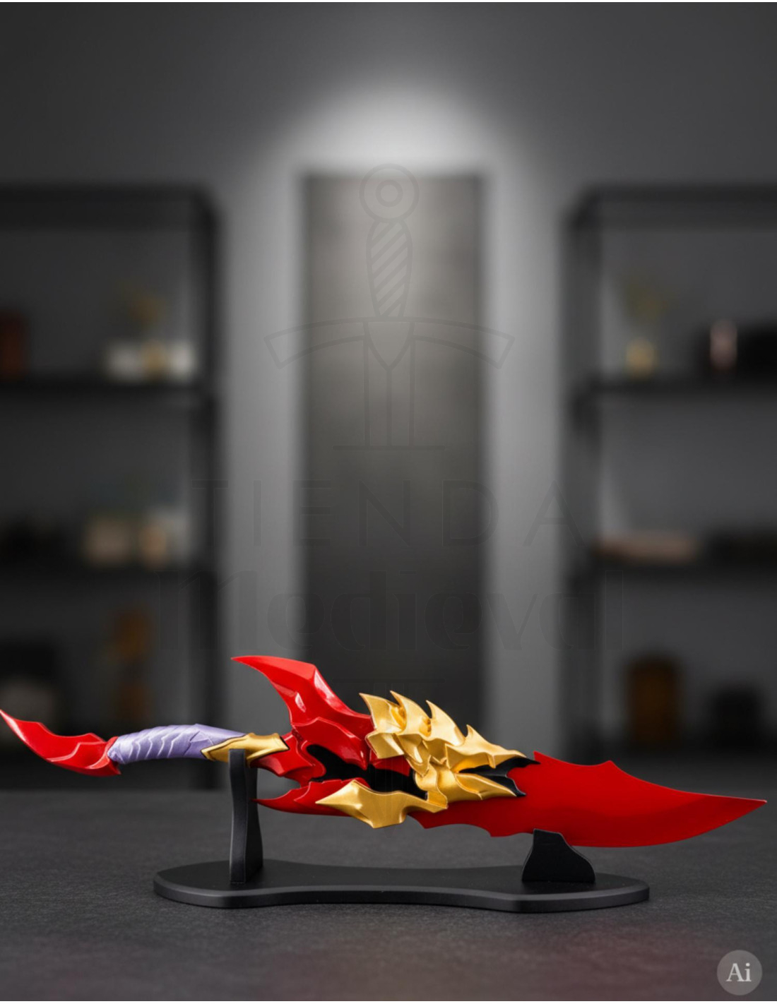 De plus, elle inclut un support robuste facilitant sa pose n'importe où, en faisant une pièce d'exposition impressionnante. Avec un poids de 1495 g, sa taille et son poids la rendent facile à manipuler et à exhiber sans effort. Son apparence se distingue par ses finitions en rouge et doré, ses détails en relief et un style évoquant puissance et caractère. Parfaite pour les collectionneurs, les fans de Solo Leveling ou les amateurs de décoration thématique, cette épée décorative porte votre passion pour l'univers de la fantaisie et de l'action à un autre niveau. Achetez dès maintenant la réplique de la Colère de Kamish et donnez une touche épique à votre espace !