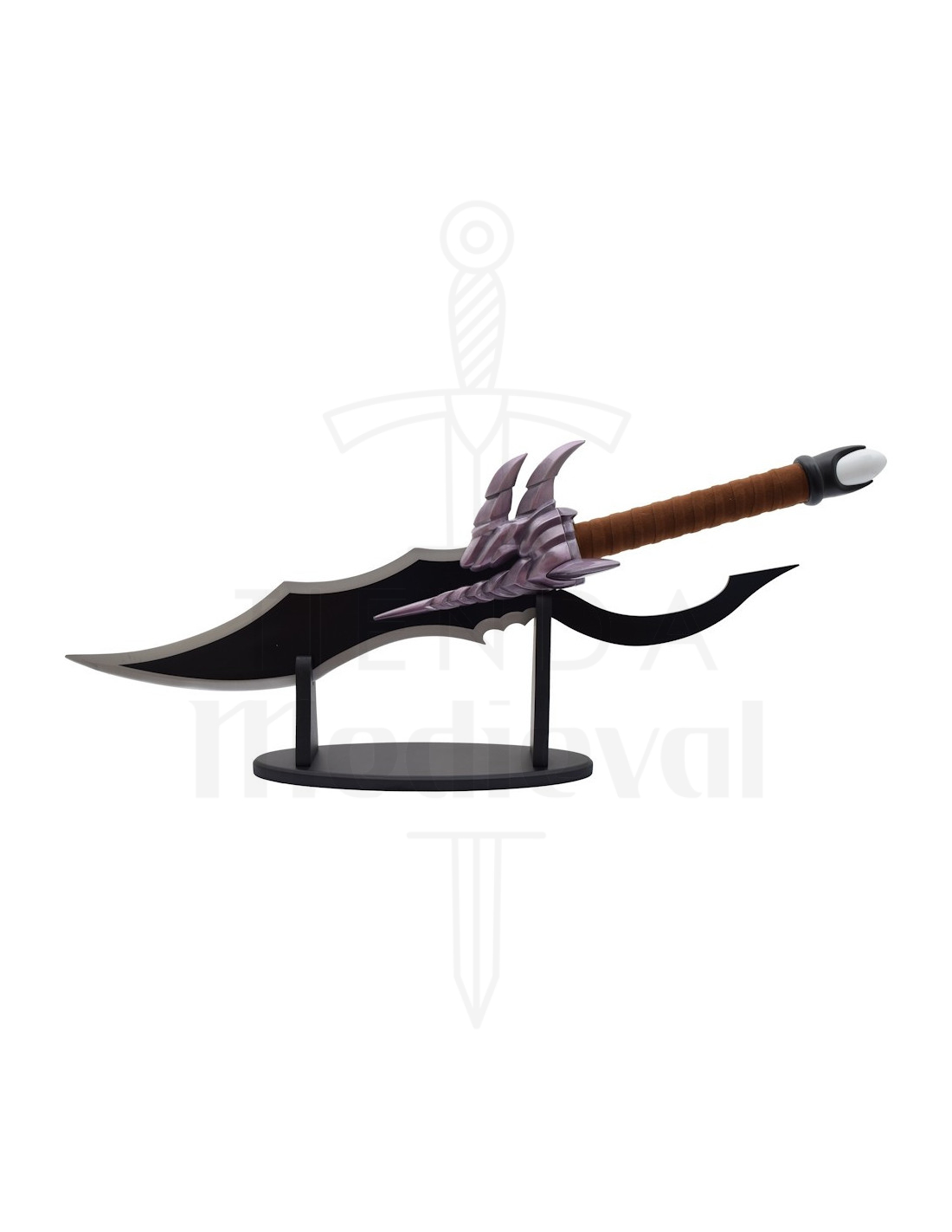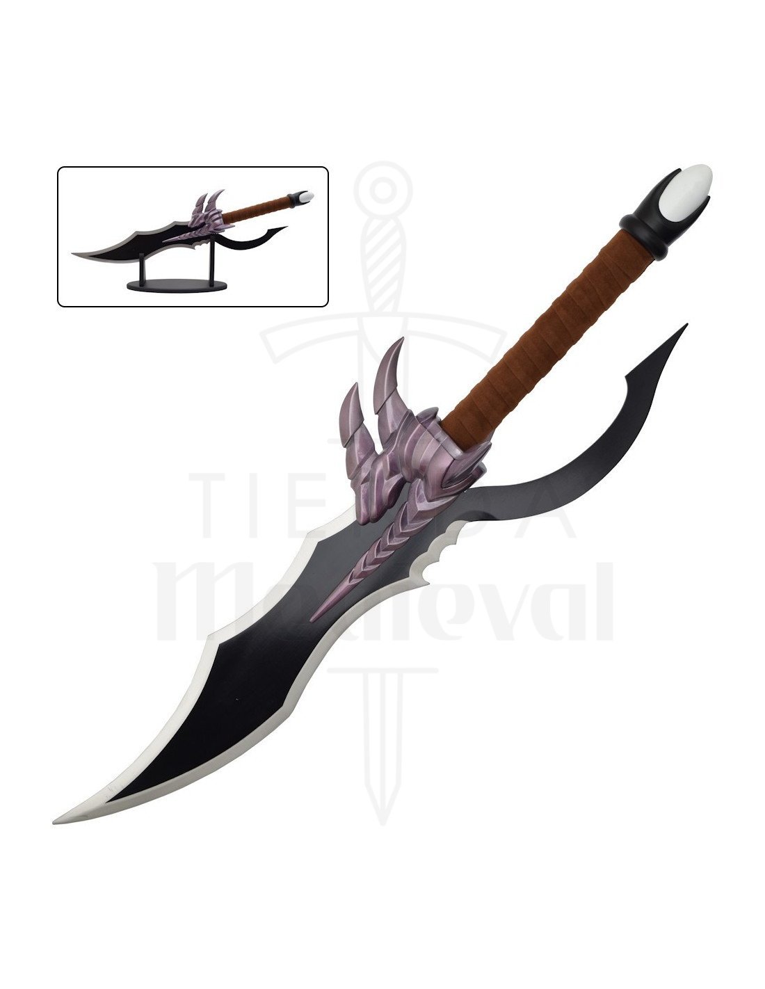 Avec une silhouette agressive et élancée, la lame noire avec un tranchant argenté et des contours irréguliers apporte dynamisme et caractère, idéal pour ceux qui recherchent un élément décoratif qui parle de lui-même. Le détail en relief en ton métal violet, simulant une griffe, ajoute de la profondeur et une finition surprenante qui ressort dans toute vitrine ou sur un mur.