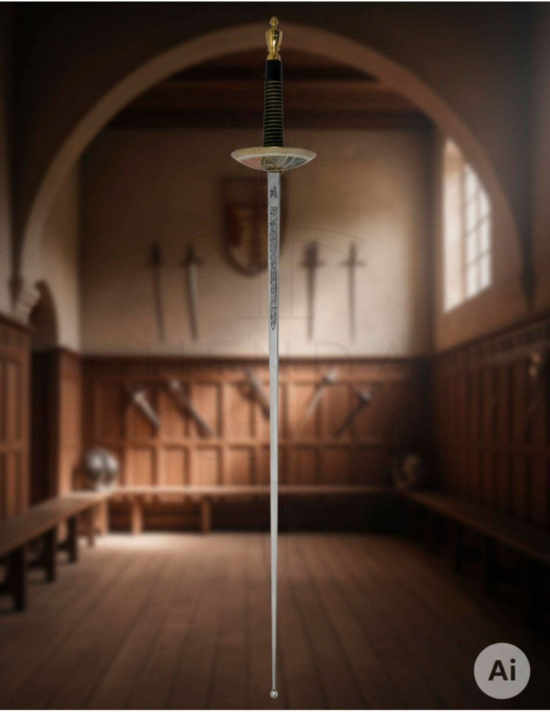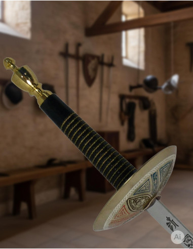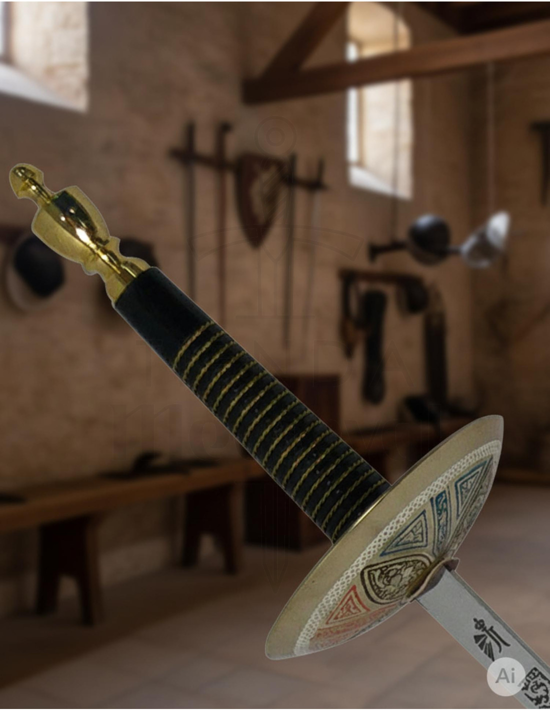 Découvrez le French Foil doré, un authentique bijou de l'épée ! Fabriqué à Tolède, en Espagne, par le maître forgeron José Luis Rubio, ce foil est le complément parfait pour les collectionneurs ou les amateurs de loisirs.