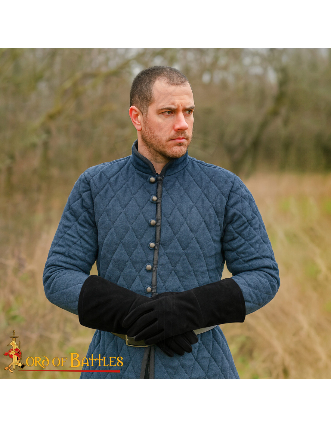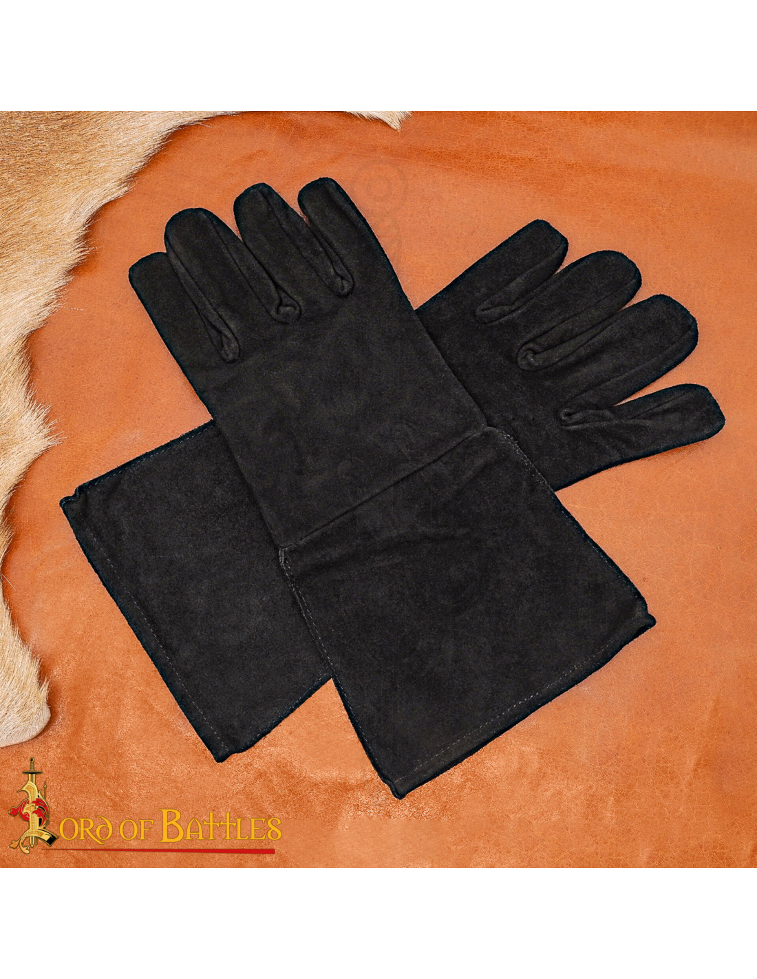 Vous recherchez une protection avec style et authenticité ? Ces gants médiévaux en cuir de daim noir vous permettent de revivre des époques passées avec une touche d'élégance et de fonctionnalité. Avec leur design classique, ils couvrent également les poignets et une partie des avant-bras grâce à leurs longues poignets, offrant une défense supplémentaire lors de la manipulation d'armes, d'armures ou lors de reconstitutions historiques.