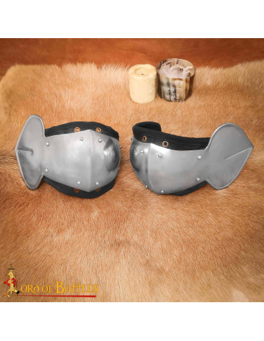 Ces genouillères allient l'esthétique de la fin du XIVe et du XVe siècle avec le confort dont vous avez besoin aujourd'hui, offrant une couverture qui épouse le contour de la jambe pour protéger l'articulation sans limiter vos déplacements. Les ailes latérales ajoutent une défense supplémentaire contre les impacts obliques, vous permettant de recevoir et de dévier les coups avec plus de tranquillité d'esprit.