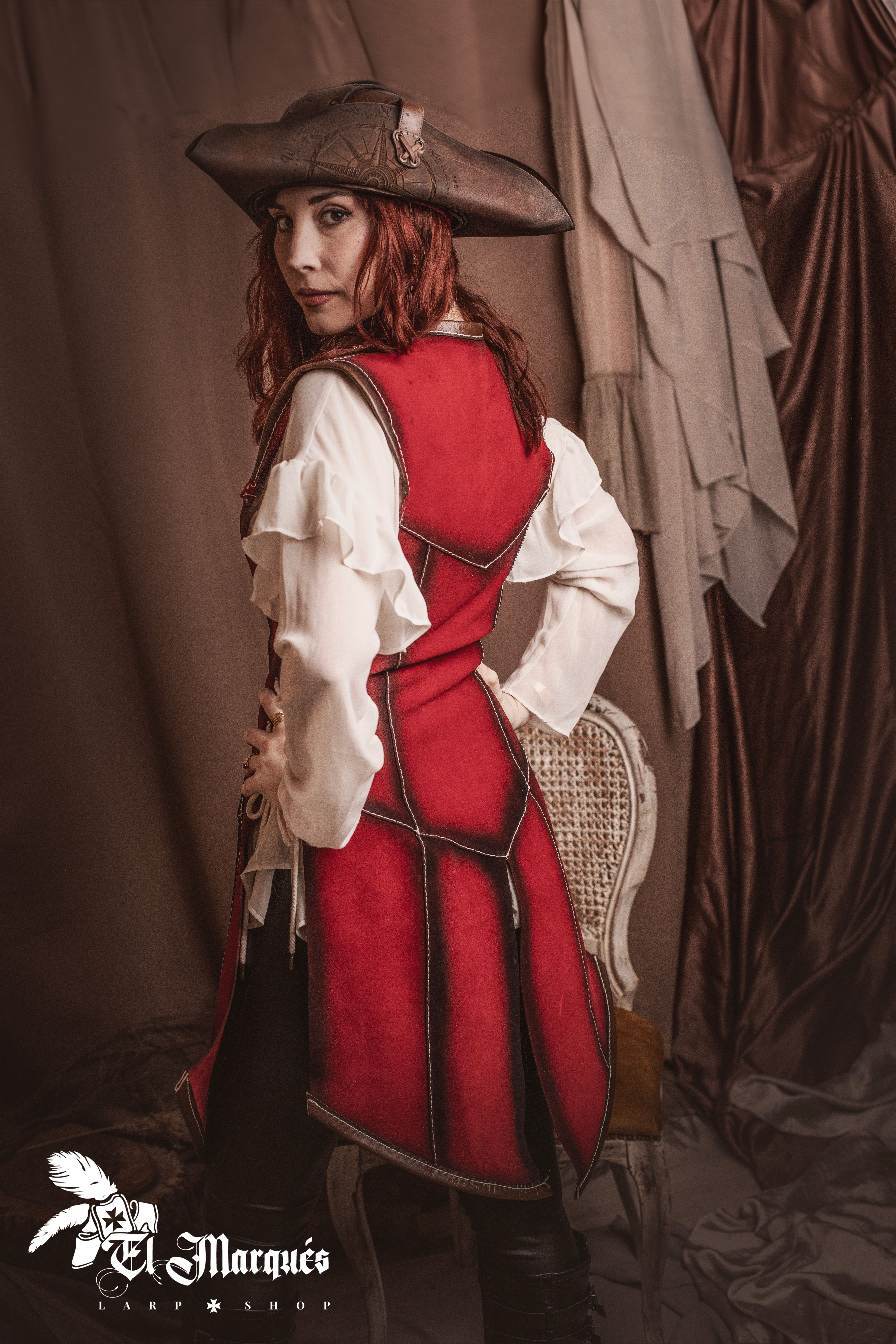 Prêtes à conquérir les mers et à éblouir à chaque banquet ? Cette veste rouge est le vêtement dont vous avez besoin pour devenir la véritable reine des pirates. Avec un design qui évoque le courage et le style des héroïnes des hautes mers, chaque détail a été pensé pour vous faire sentir puissante et élégante.