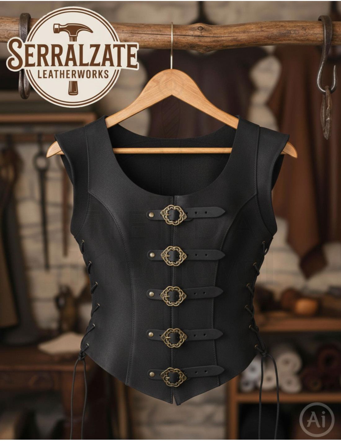 Le modèle Julienne offre un ajustement conçu pour s'adapter à vous, grâce aux cordons latéraux qui permettent de régler la pièce avec précision et de la maintenir fermement tout au long de la journée, même lors de mouvements intenses. Sa finition noire apporte une présence élégante, qui complète à la fois les tenues historiques et modernes, ajoutant une protection visuelle et une structure à votre garde-robe.