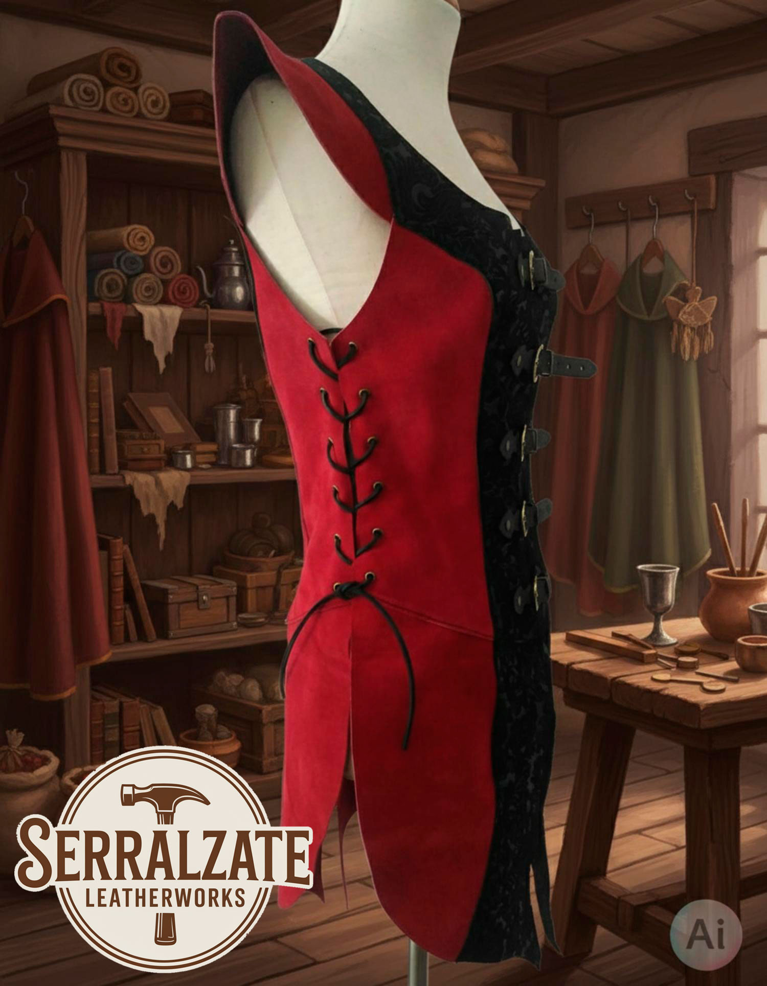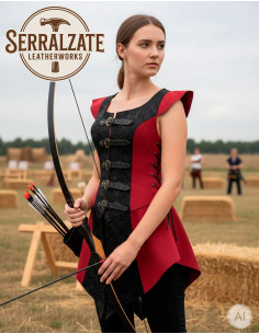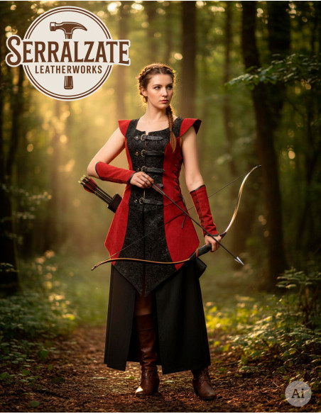 Acheter la Robe de guerrière médiévale en cuir daim rouge et noir, c'est choisir une pièce fabriquée en Espagne, prête à faire la différence en toute occasion. Vente de la Robe de guerrière médiévale en cuir daim rouge et noir en ligne, consultez la disponibilité et les options de couleur pour emporter un vêtement fait sur mesure.