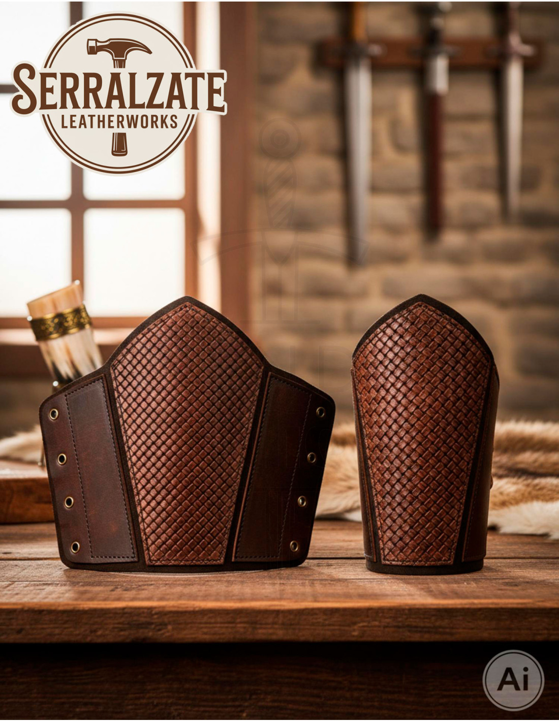 Garde-boue vikings en cuir marron à écailles, confectionnés en cuir de première qualité par des artisans réputés en Espagne, allient esthétique historique et résistance conçue pour un usage réel. La finition en écailles apporte un caractère authentique, tandis que la construction soignée garantit durabilité et une apparence qui s'améliore avec le temps.