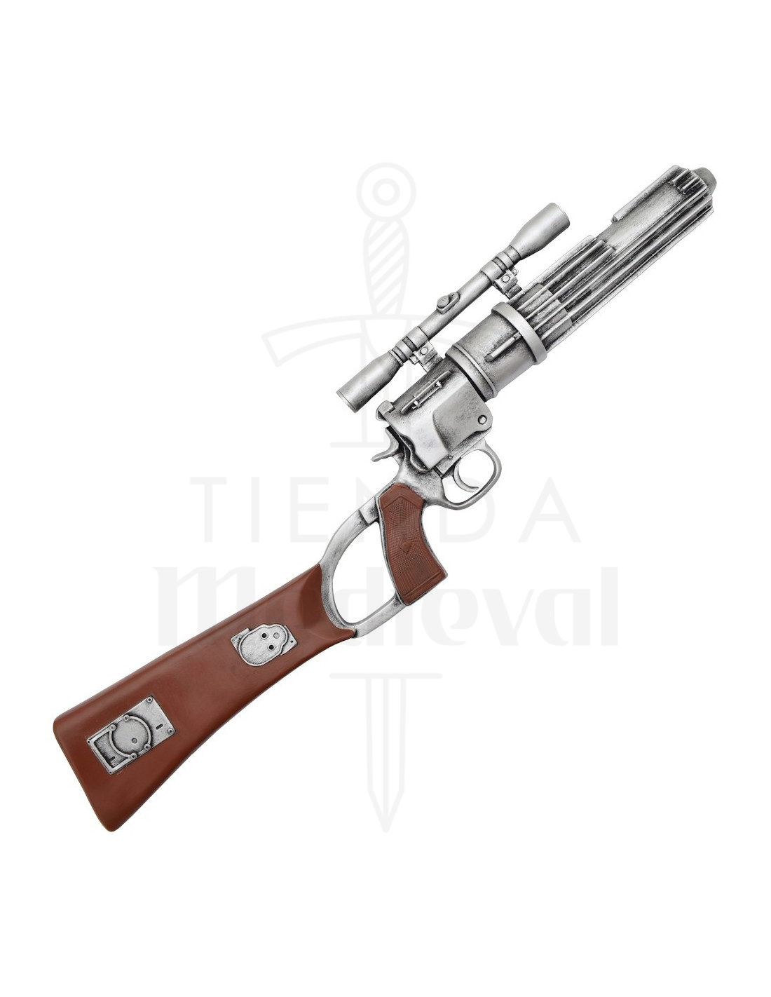 La poignée et la crosse en ton marron imitant le bois non seulement renforcent le réalisme, mais facilitent également la prise en main et la manipulation pendant les séances photo ou présentations. Étant une réplique conçue pour l'exposition et le cosplay, son design équilibré facilite le montage, le maintien et la pose sans complications.