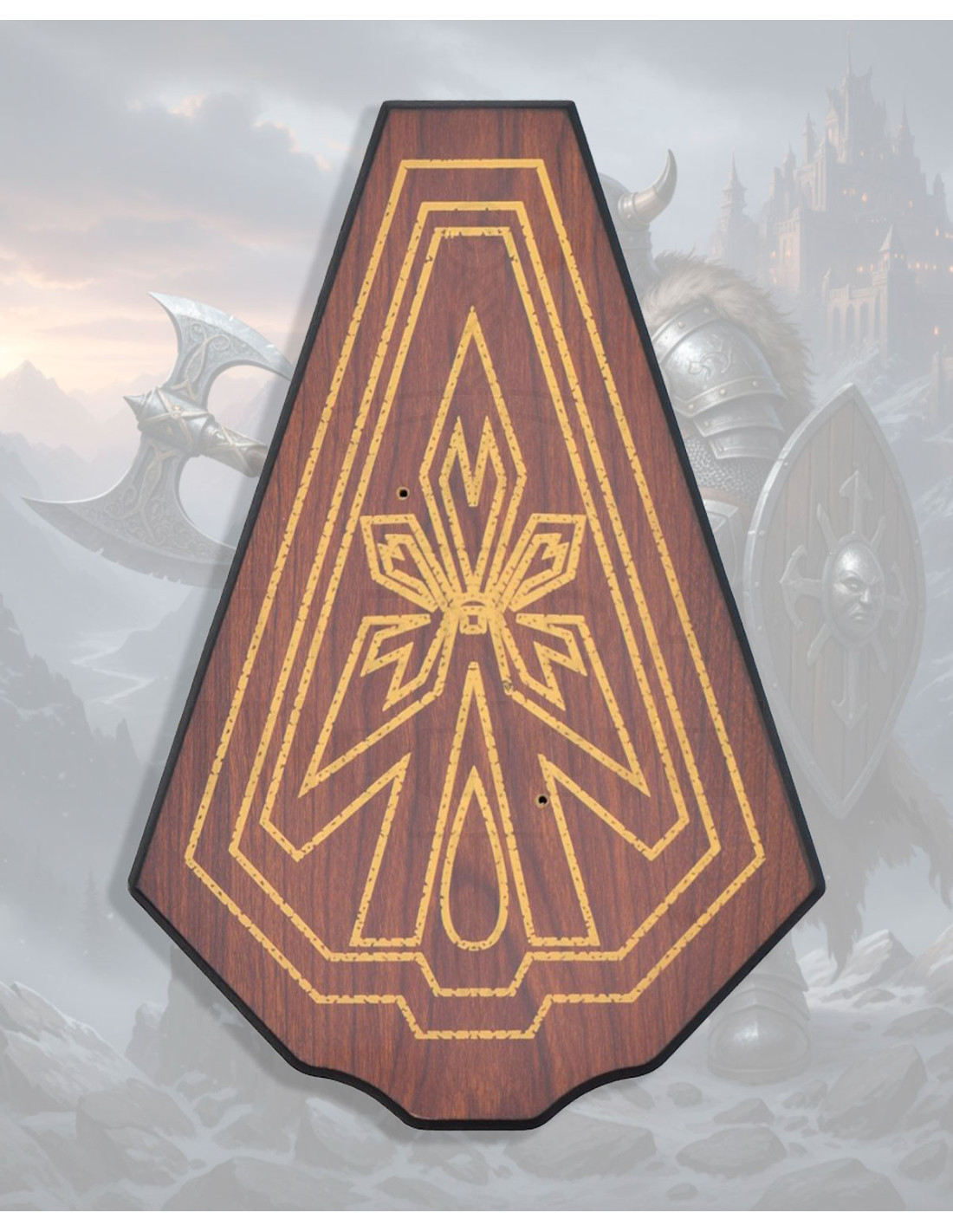 Elle comprend une plaque de montage en bois de couleur marron foncé avec de subtiles lignes dorées, conçue pour que l’installation soit simple et le résultat impeccable. Ainsi, vous avez tout ce qu'il vous faut pour l'afficher sur un mur, créant un coin thématique qui parle d’aventure, de tradition et de bon goût.