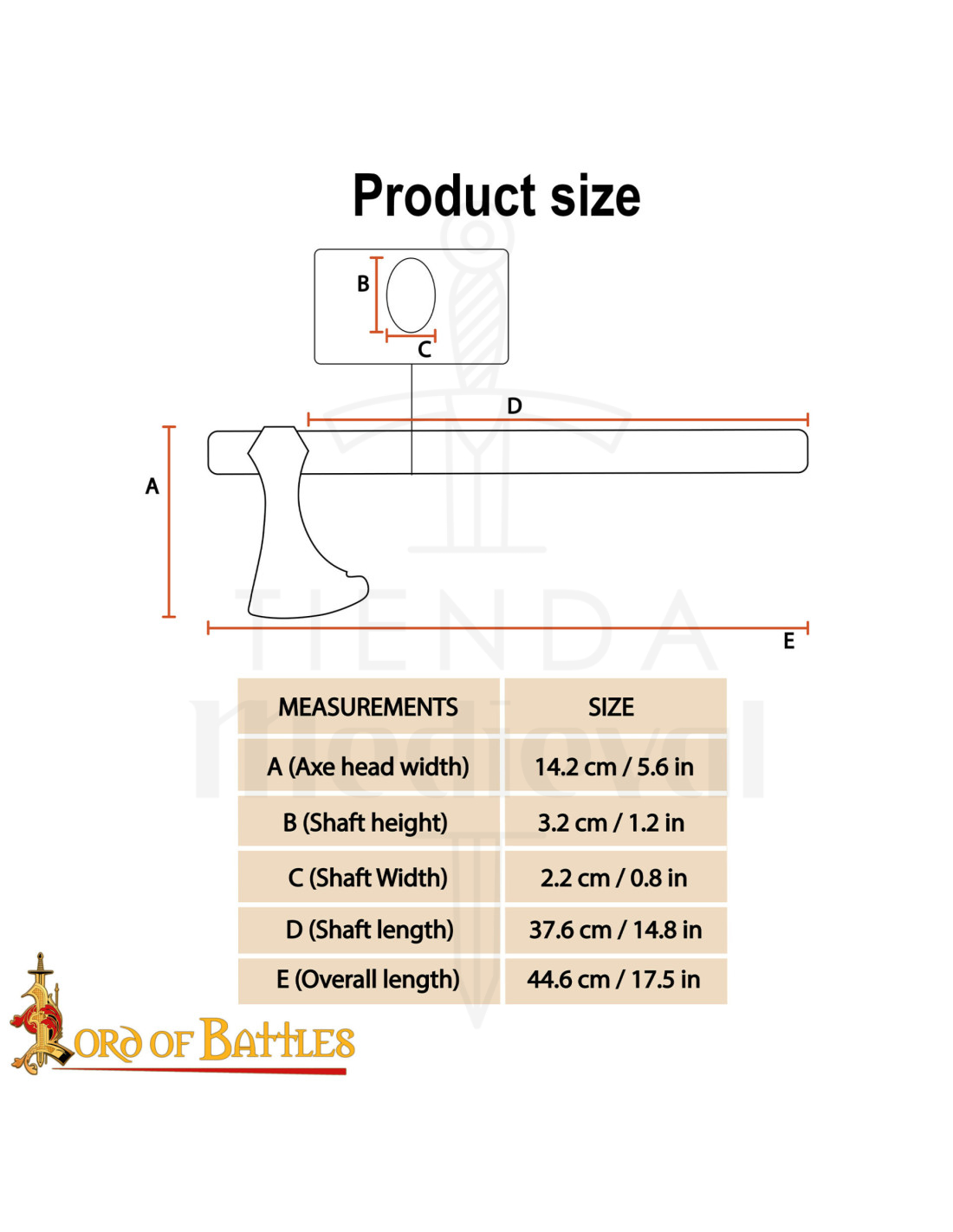 Le manche en bois poli offre une prise en main confortable et élégante, conçu pour que la pièce se sente équilibrée dans la main et s'adapte parfaitement à tout mur ou coin. L'union ferme entre la tête et le manche renforce la sensation de qualité, permettant de la manipuler avec confiance lors de reconstitutions ou d'expositions sans perdre l'esthétique traditionnelle.