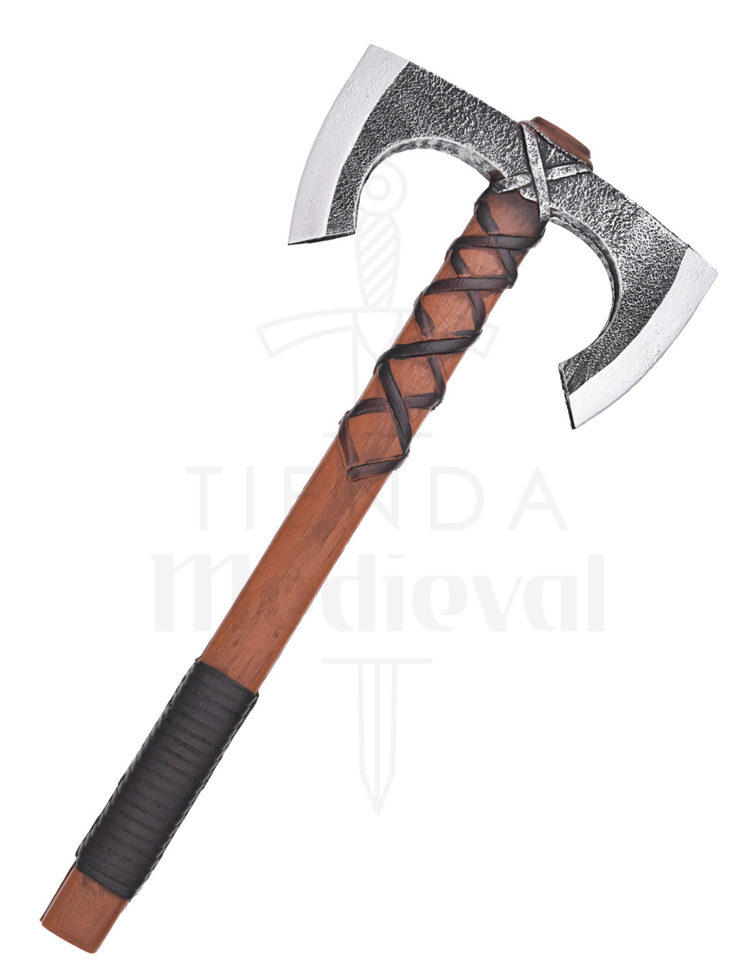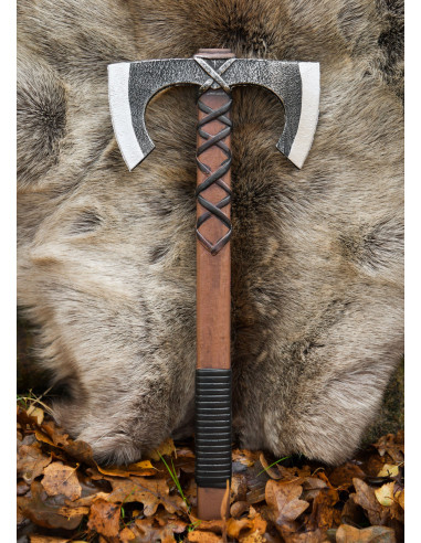 Jorvak n'est pas seulement un accessoire, c'est un compagnon d'aventure : son esthétique rustique et les détails subtils d'utilisation simulent une vie de batailles, renforçant n'importe quel personnage, d'un mercenaire aguerri à une shield maiden déterminée. Si vous êtes intéressé par l'achat de Hache vikingue double pour LARP, modèle Jorvak, vous la trouverez conçue pour s'intégrer à des costumes et des scènes sans perdre en crédibilité.