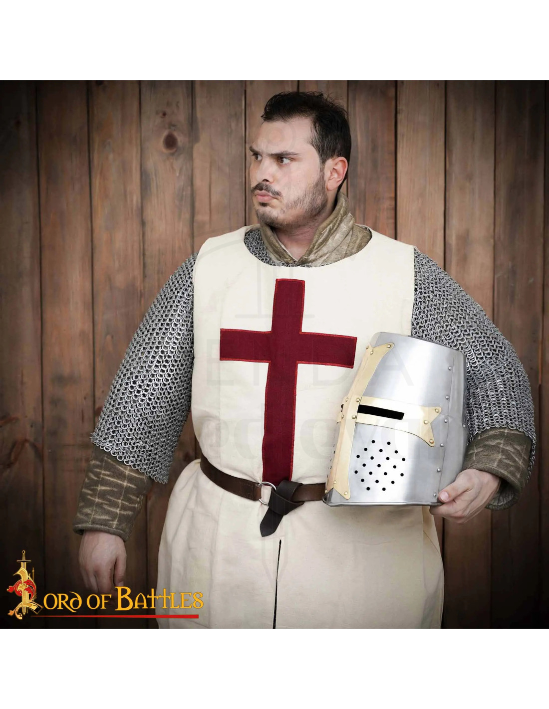 Ce heaume inspiré de l'époque des Croisades reflète le courage et le sacrifice des chevaliers médiévaux, étant une pièce qui valorise la tradition et l'art de l'armure ancienne. Parfait pour compléter votre costume historique et se démarquer lors de tout événement de reconstitution ou exposition.