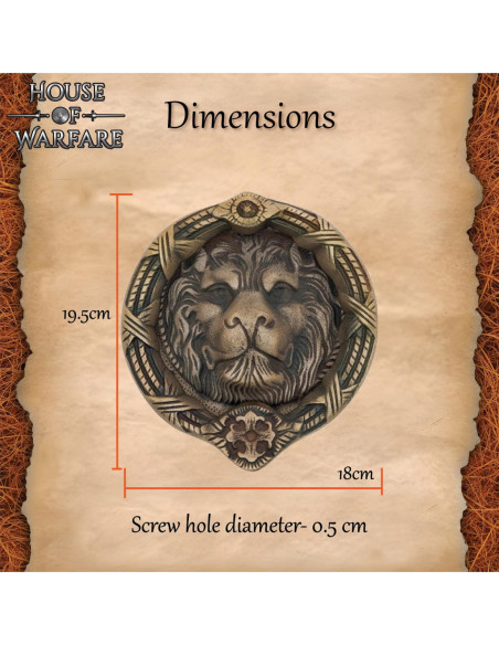 Avec le poids solide et la structure résistante de la fonte, cette pièce ne remplit pas seulement une fonction pratique, mais invite également votre espace à raconter une histoire de tradition, de caractère et de sécurité. La finition en ton laiton vieilli rehausse les reliefs et détails de la face du lion, évoquant une esthétique vintage qui ne passe pas inaperçue, ajoutant chaleur et profondeur à la présence de votre porte. La force de la figure et la finition ancienne travaillent ensemble pour projeter l'autorité, tandis que l'anneau tressé et les ornements floraux offrent un équilibre visuel qui complète votre façade avec une touche de distinction classique.