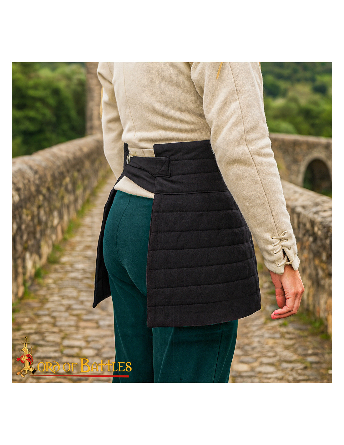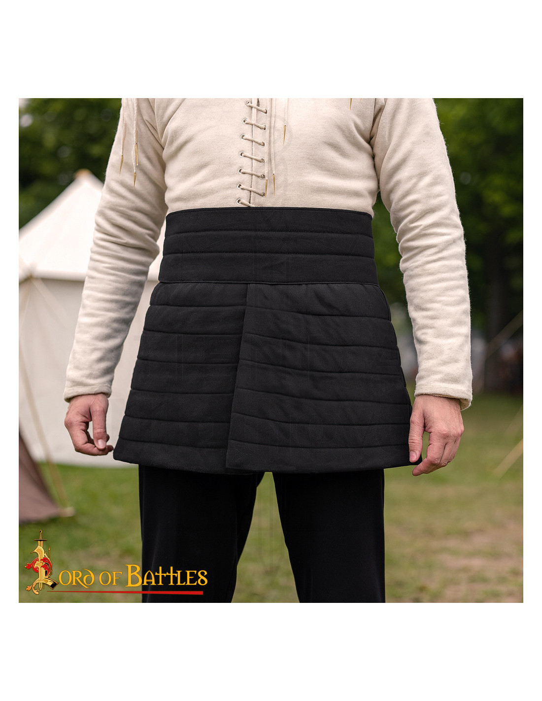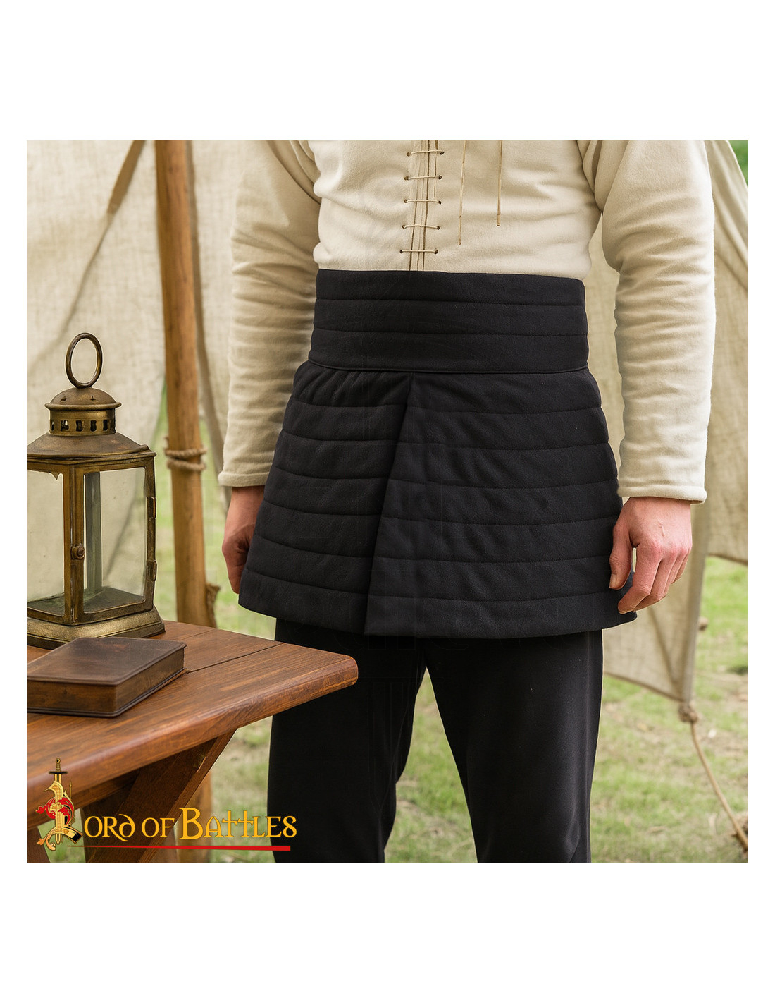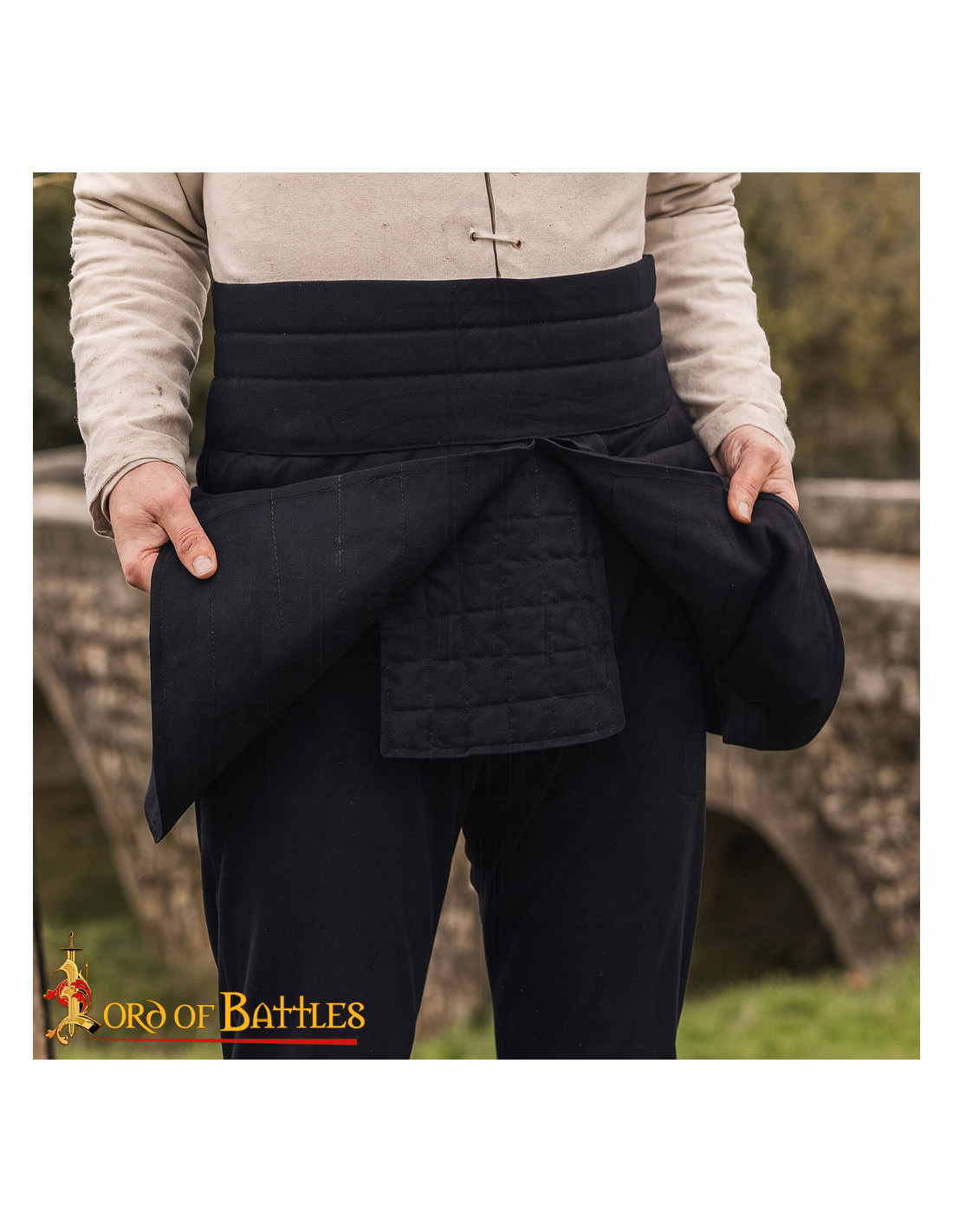 En choisissant d'acheter la Jupe médiévale rembourrée en coton, couleur noire, vous obtenez une pièce conçue pour de longues séances d'entraînement et des reconstitutions intenses, qui protège là où c'est le plus nécessaire et reste confortable pendant des heures. L'extérieur en toile de coton robuste et le rembourrage en coutures horizontales maintiennent la structure et empêchent le rembourrage de se déplacer, ce qui signifie une protection constante sans bosses inconfortables lorsque vous courez, vous asseyez ou montez.