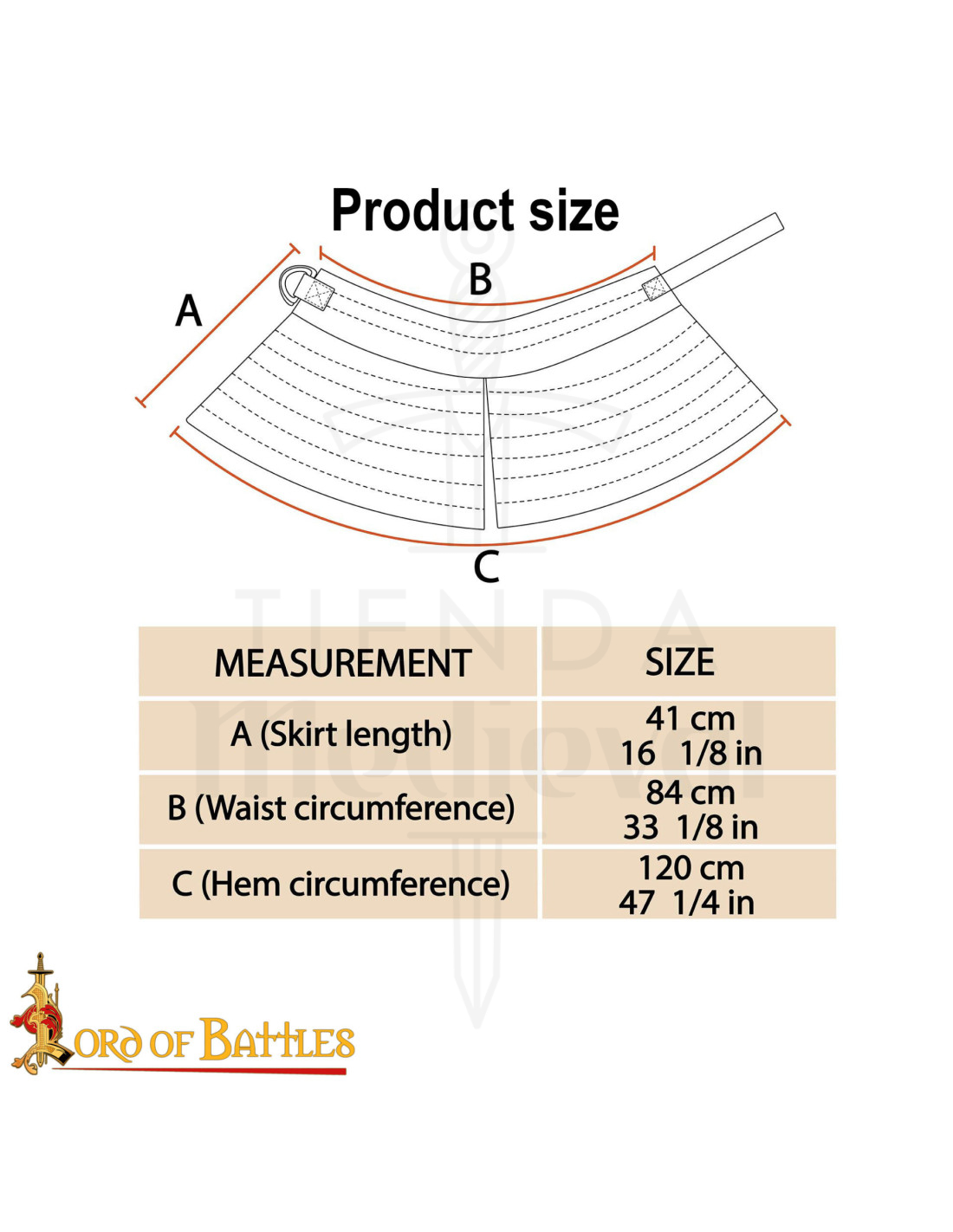 L'apparence visuelle correspond à l'image : une ceinture noire avec des coutures horizontales, incurvée à la taille et une bande avec un anneau métallique pour la fermeture, conçue pour être portée autour de la taille avec discrétion et fermeté. Si vous voulez acheter la Jupe médiévale rembourrée en coton, couleur noire, vous obtiendrez une solution polyvalente et pratique pour vos batailles et reconstitutions.