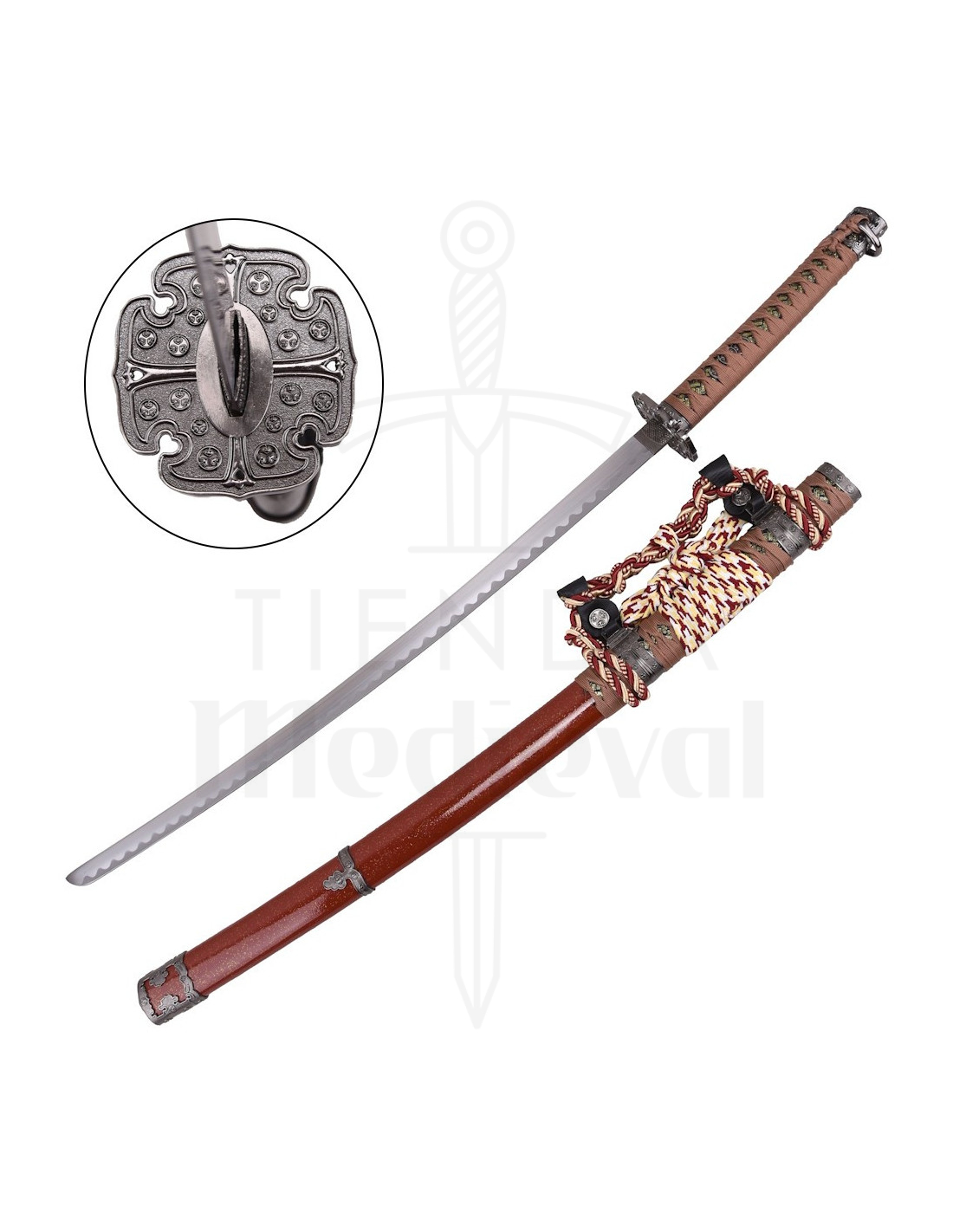 Si vous recherchez une option prête à être affichée ou offerte, acheter la katana décorative traditionnelle japonaise cordon rouge argenté offre la garantie de vous procurer un article complet, qui comprend la lame ornée et sa housse décorée, sans nécessiter de montages supplémentaires. C'est un choix idéal pour ceux qui apprécient des pièces avec un caractère historique et une esthétique artisanale.
