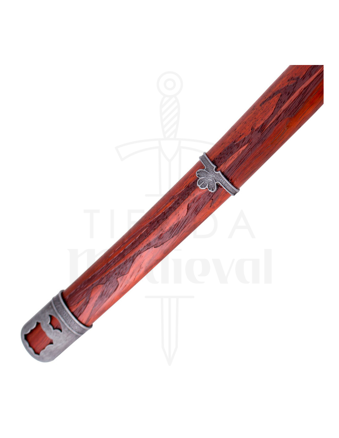 Accompagnée d’un gaine en bois rouge avec gravures, cette katana devient une pièce de collection digne d’admiration. Son support inclus permet de l’exposer avec élégance dans n’importe quel espace, mettant en valeur sa beauté et son symbolisme.